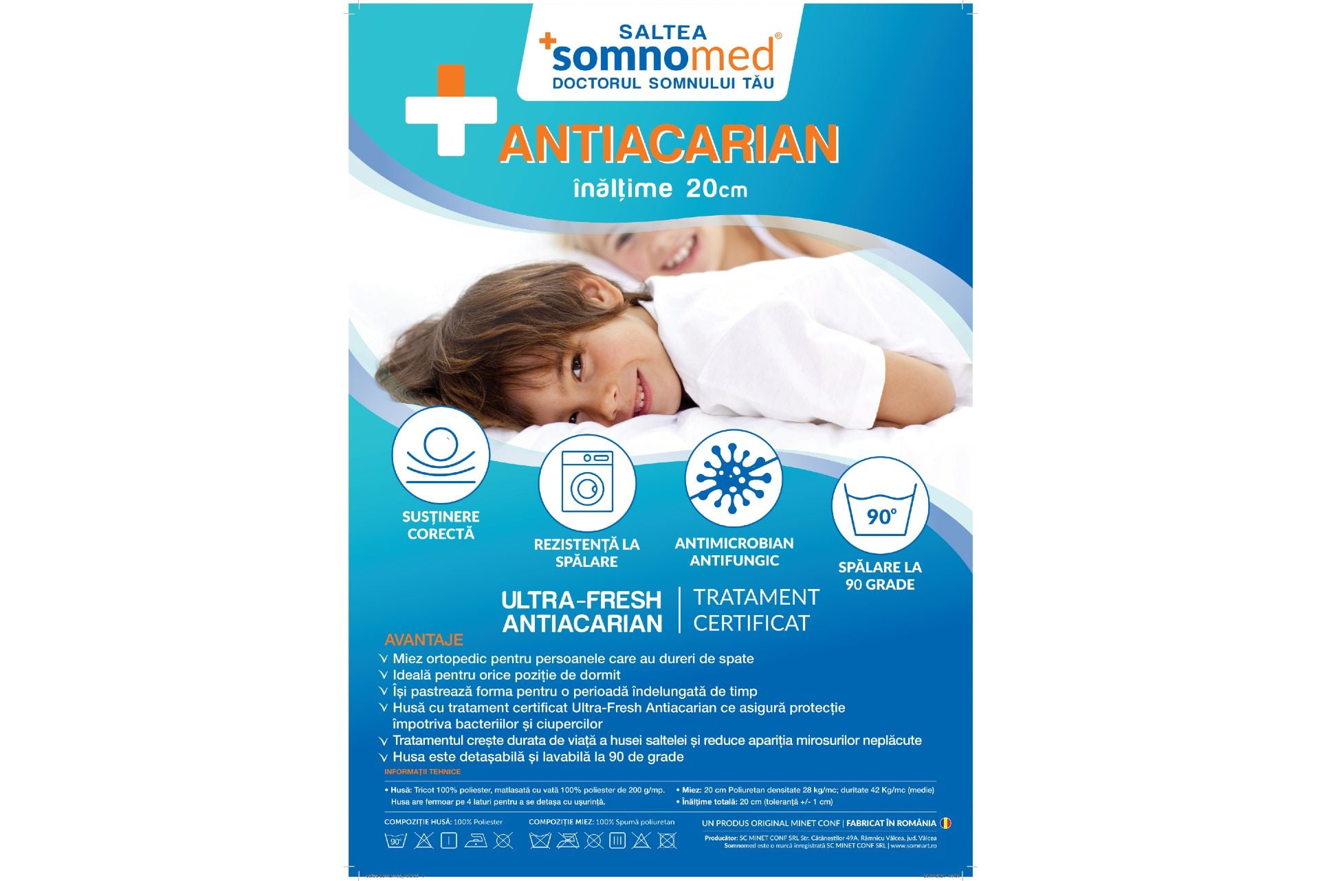 Descriere Saltea ortopedica Somnomed Antiacaria 90x200 cm,