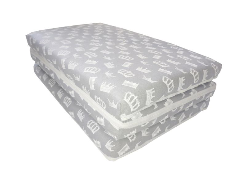 Saltea pliabila pentru copii din spuma 120x60x5 cm, coronite gri