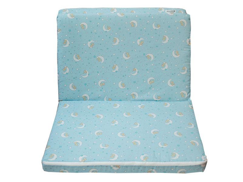 Salteaua este confectionata din spuma poliuretanica (burete) si este prevazuta cu o husa detasabila 100% din bumbac, fapt care va ajuta copilul sa nu transpire, sa se simta relaxat si sa nu dezvolte alergii. Aceasta il va ajuta pe cel mic sa se poata relaxa sau odihni in orice pozitie. Poate fi pliata cu usurinta si utilizata atat acasa, cat si in calatorii sau excursii.