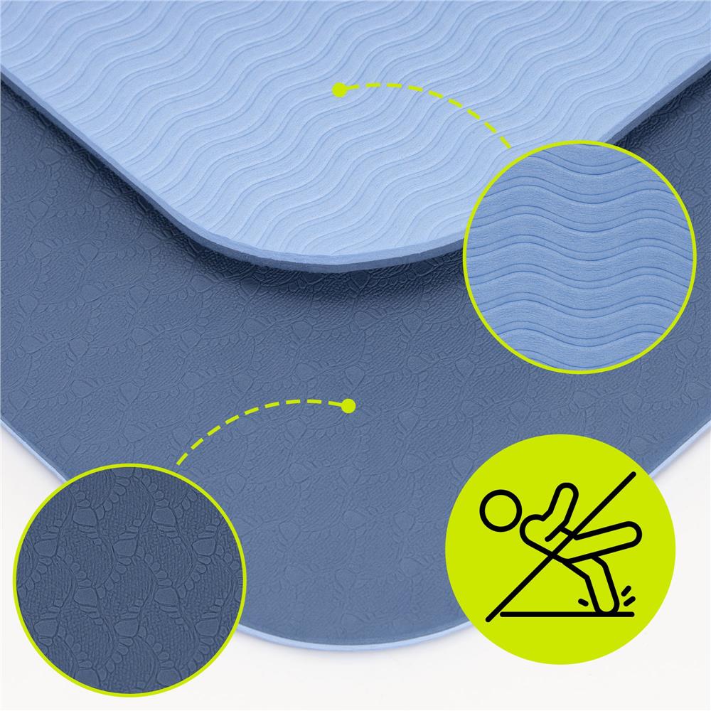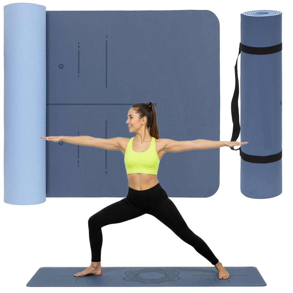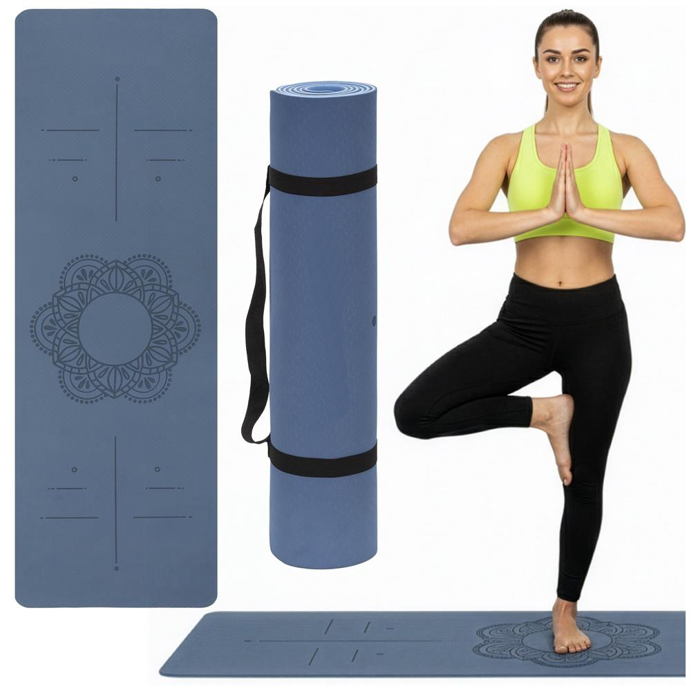 Saltea yoga antiderapanta din TPE, 183x61x0.6 cm, cu curea transport, albastru Household NewTrend