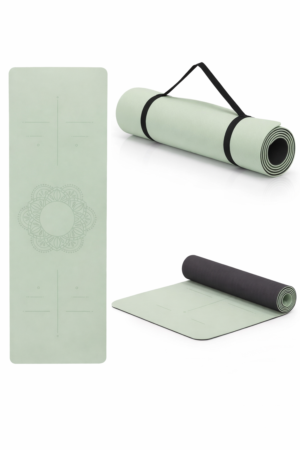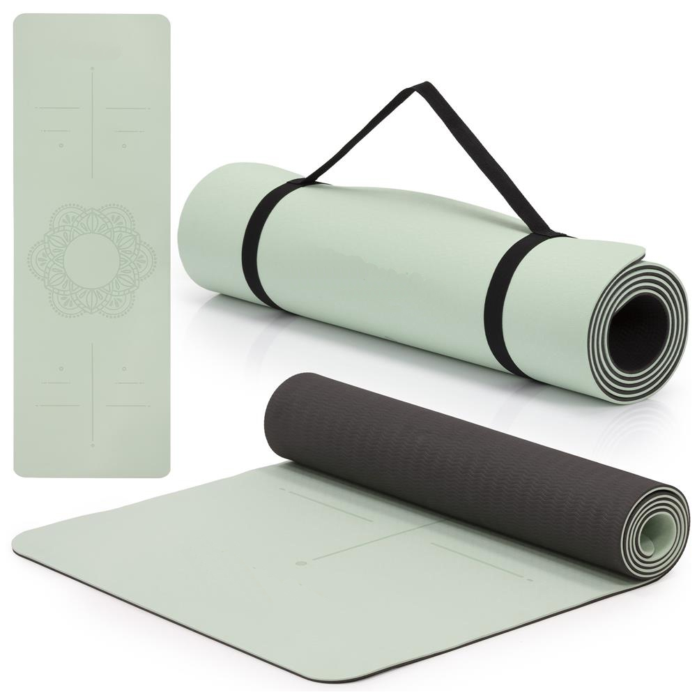 Saltea yoga antiderapanta din TPE, 183x61x0.6 cm, cu curea transport, verde Household NewTrend