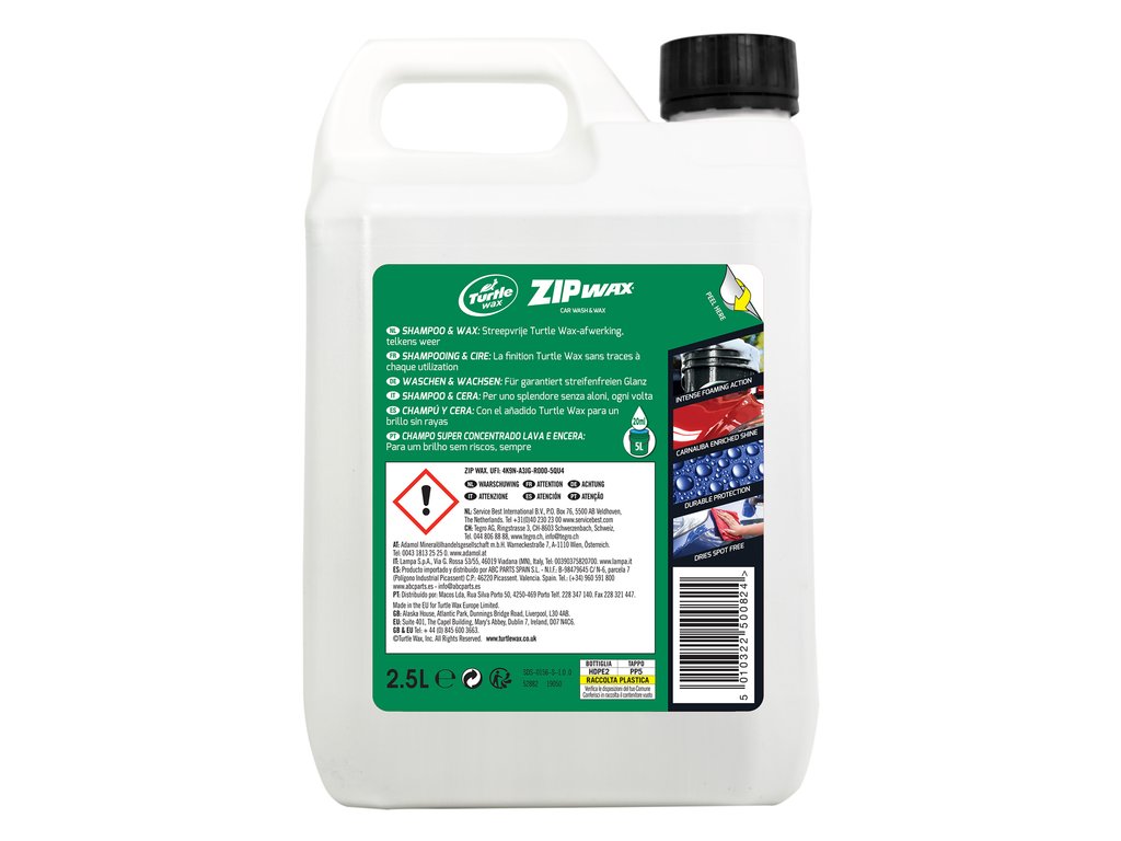 Turtle Wax Zip Wax Car Wash and Wax este o formula super-concentrata care spala cu delicatete murdaria si noroiul, lasand masinile stralucitor curate. In doar 1 pas, curata uleiurile si murdaria de pe toate suprafetele exterioare, iar ceara de Carnauba adaugata lasa in urma un finisaj hidrofug.