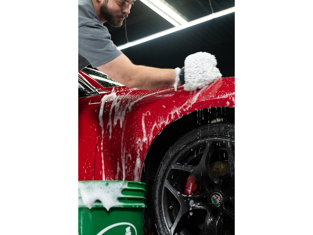 - PASUL 3: Inmuiati o manusa de spalat din microfibra in spuma si incepeti sa spalati vehiculul de sus in jos, indepartand mai intai murdaria si impuritatile de pe acoperis, capota si portbagaj, urmate de laterale si terminand cu panourile inferioare.