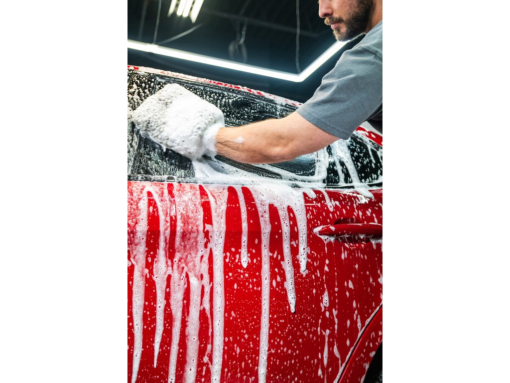 - PASUL 3: Inmuiati o manusa de spalat din microfibra in spuma si incepeti sa spalati vehiculul de sus in jos, indepartand mai intai murdaria si impuritatile de pe acoperis, capota si portbagaj, urmate de laterale si terminand cu panourile inferioare.