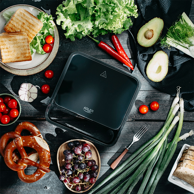 Adler AD 3070 este un aparat de bucatarie versatil si eficient care va face din gatit o placere. Indiferent daca doriti sandvisuri prajite delicioase sau mancaruri perfecte la gratar, acest sandwich maker multifunctional va va satisface asteptarile. Designul sau elegant si caracteristicile usor de utilizat il fac un element esential al oricarei bucatarii moderne.