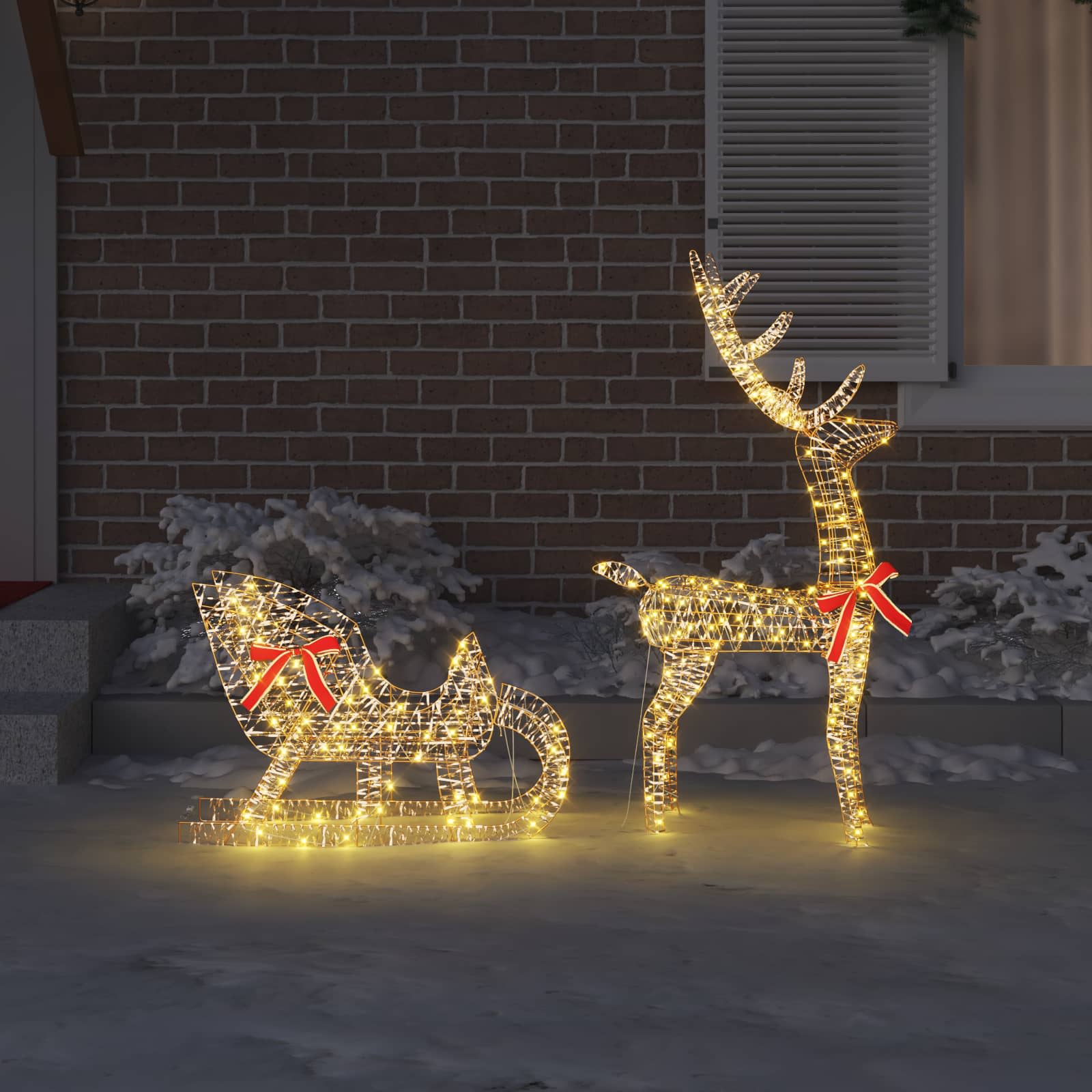 Sania trasă de reni este o piesă adorabilă ce aduce bucuria Crăciunului în orice decor de sărbători. Cu un stil simplu și elegant, această decorațiune sezonieră îmbină modernul cu spiritul festiv. Cu lumini LED albe calde, poate transforma spațiile interioare și exterioare protejate într-un tărâm de iarnă, fiind perfectă pentru întâlniri de Crăciun. Figurinele frumos sculptate de reni care trag sania adaugă magie în casa dumneavoastră în sezonul sărbătorilor.