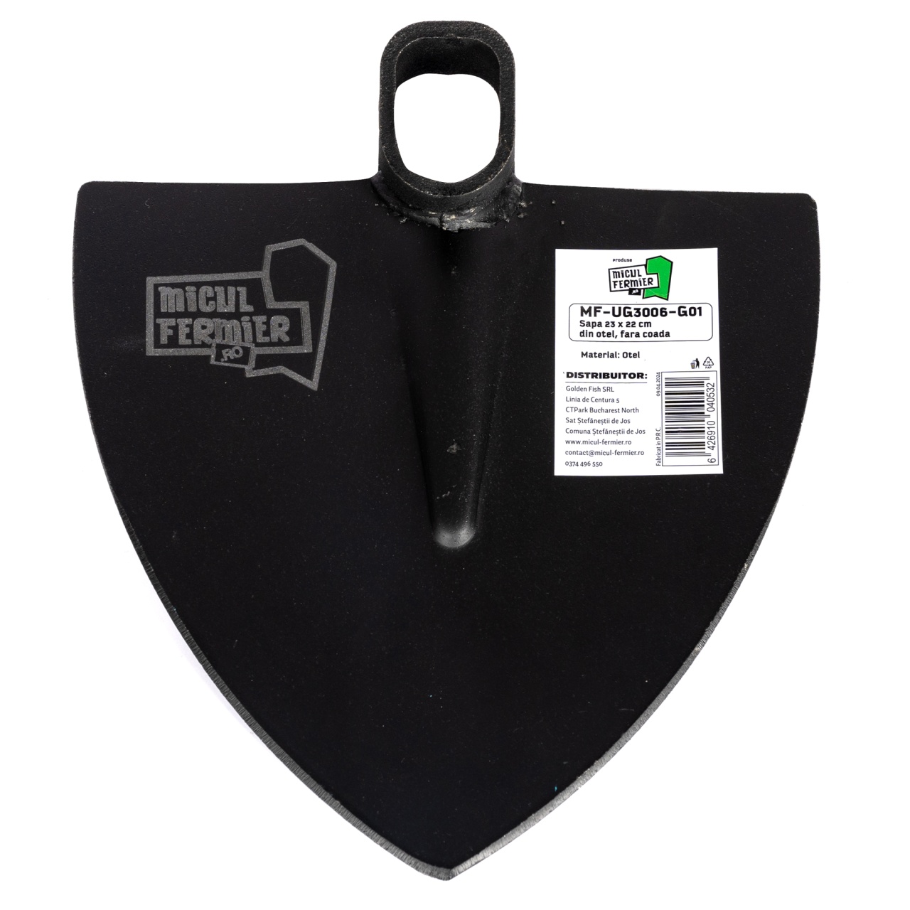 Sapa Micul Fermier din oțel, cu dimensiunea de 23x22 cm, este o unealtă practică și rezistentă pentru lucrări uzuale de grădinărit și agricultură. Forma lată ajută la lucru eficient, iar lipsa cozii îți permite să o montezi pe coada potrivită stilului tău de lucru.