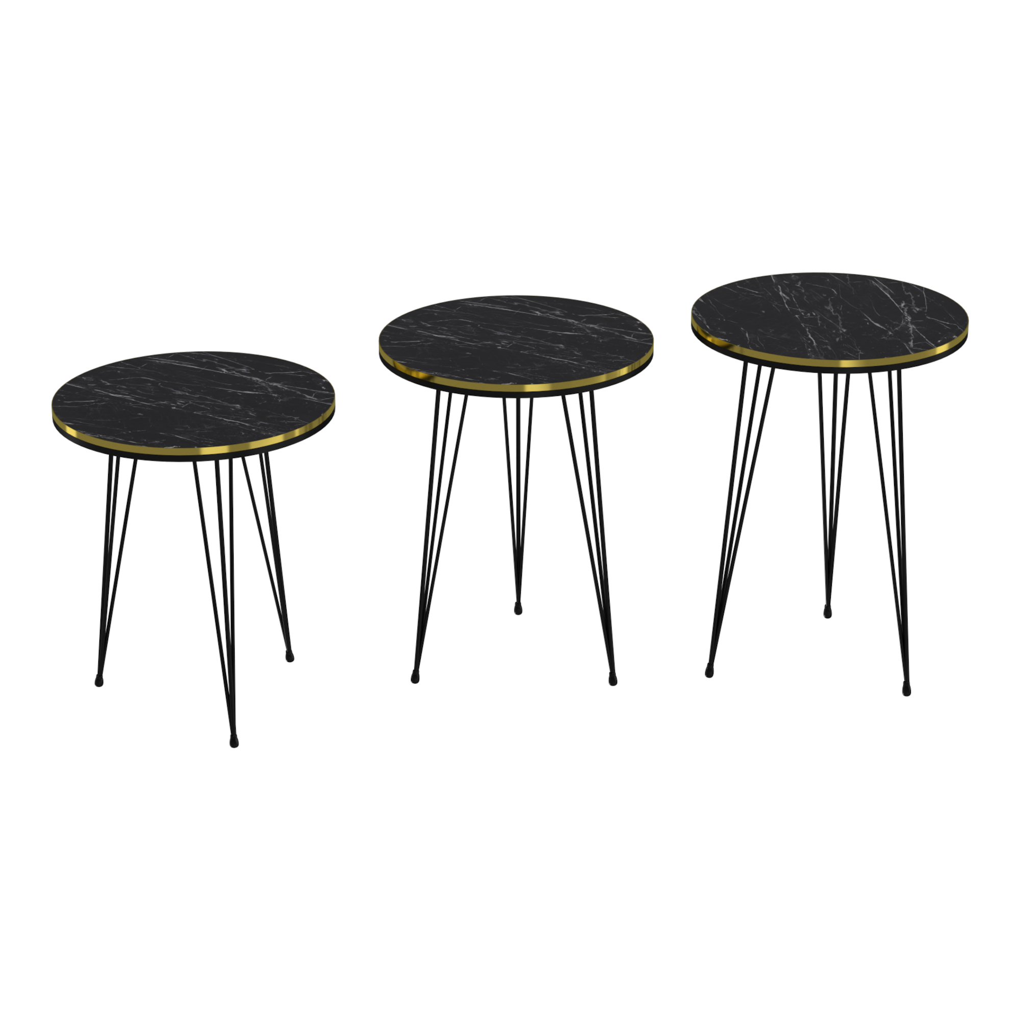 Satztisch Ry im 3er Set Marmor, schwarz / Gold / Schwarz [en.casa]