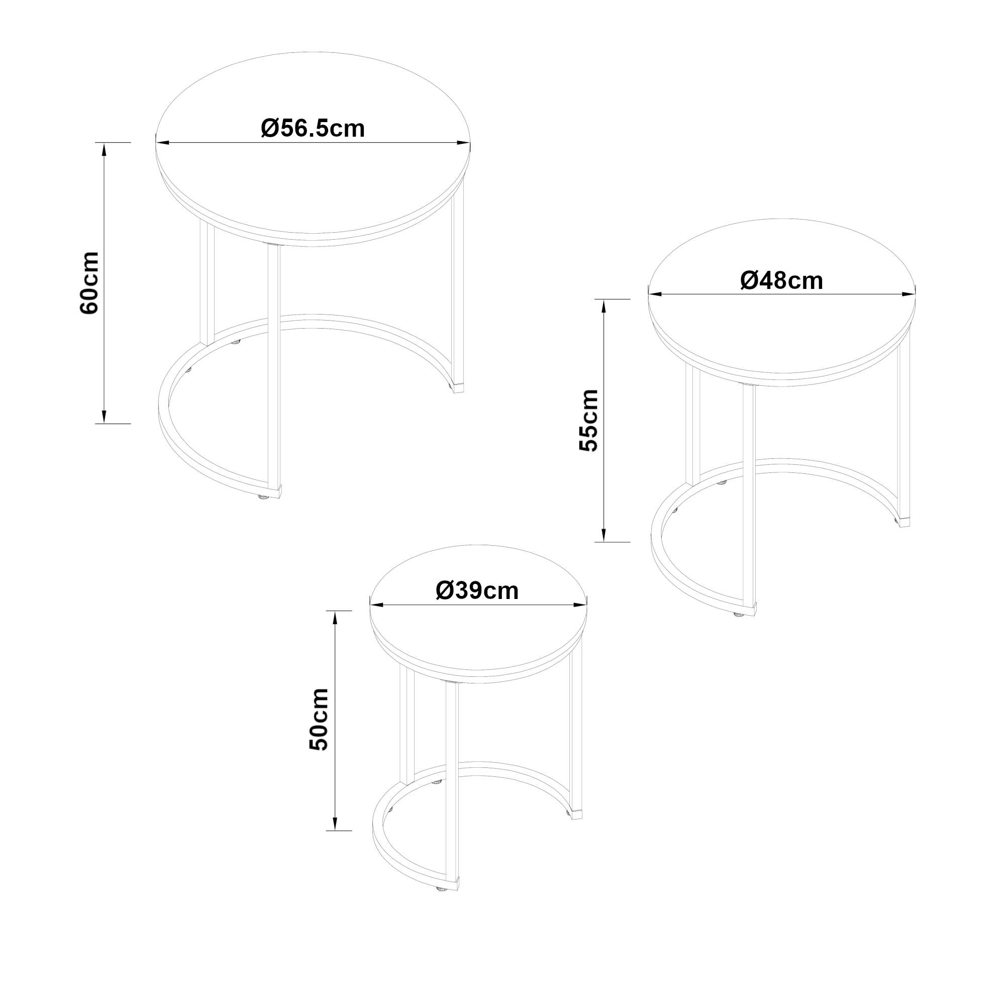 - Mittlerer Tisch (HxØ): 55 x 48 cm