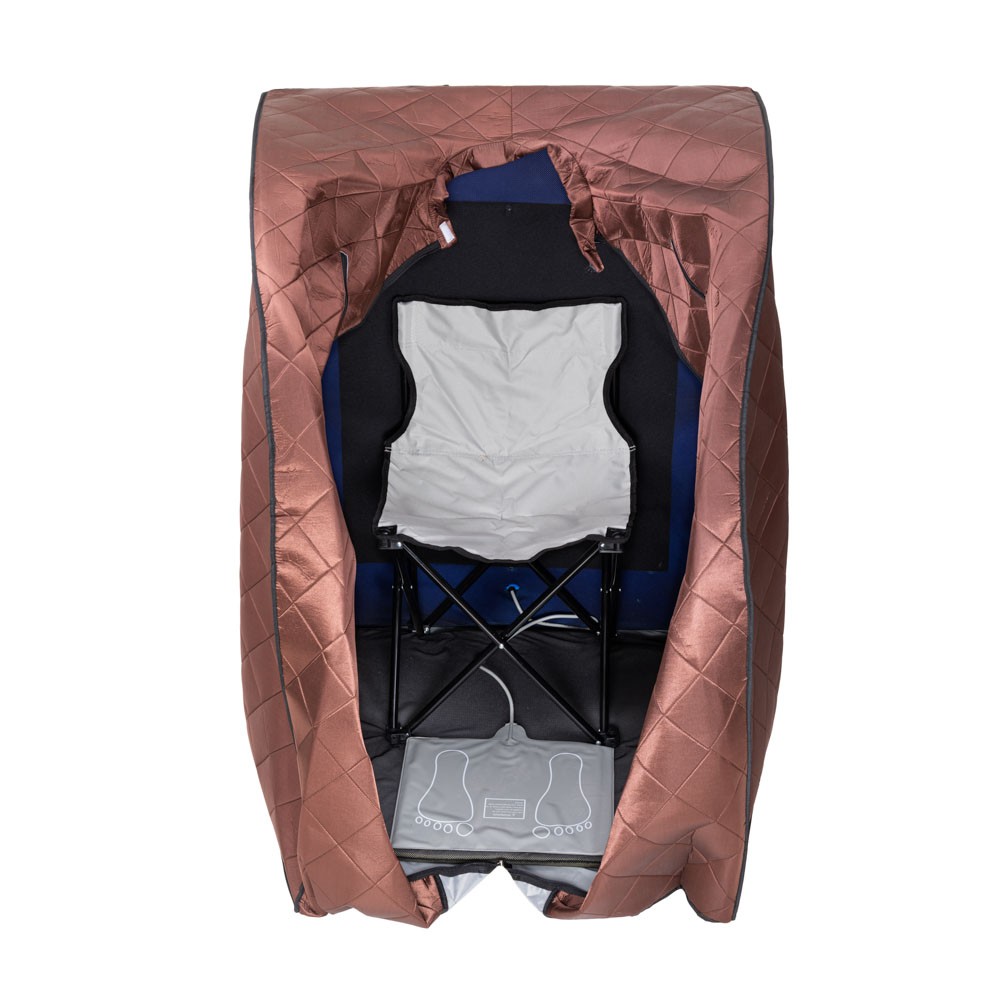 Sauna este prevazuta cu un scaun pliabil si un suport de incalzire pentru picioare. Folositi telecomanda pentru a regla temperatura atat a saunei, cat si a suportului pentru picioare. Fermoarele cu doua directii va faciliteaza intrarea/iesirea din sauna. Sauna are, de asemenea, doua deschideri pentru brate cu fermoar, care va vor fi de folos daca decideti sa cititi o carte sau sa vizionati un film pe tableta in timp ce va bucurati de sauna. Designul sau de economisire a spatiului face ca sauna portabila cu infrarosu inSPORTline Mufera sa fie ideala pentru spatiile mici - o puteti plia cu usurinta si o puteti depozita sub pat sau in spatele dulapului.