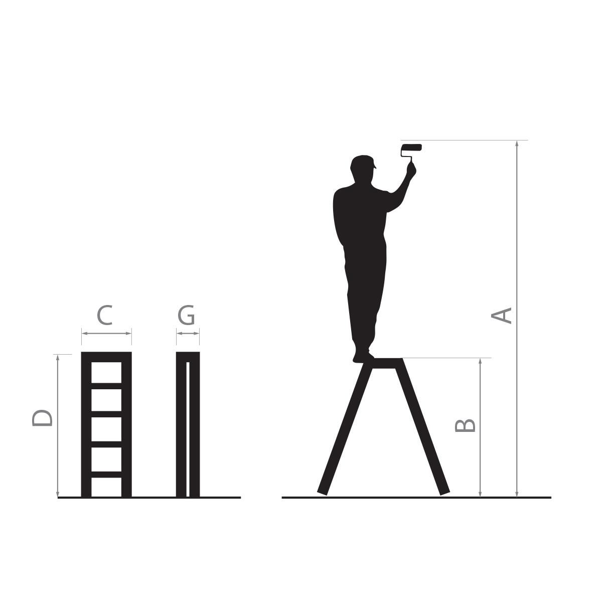 Scara aluminiu, 2 tronsoane, 3 trepte, platforma, max 125 kg, 0.9 m, Drabest GartenVIP DiyLine