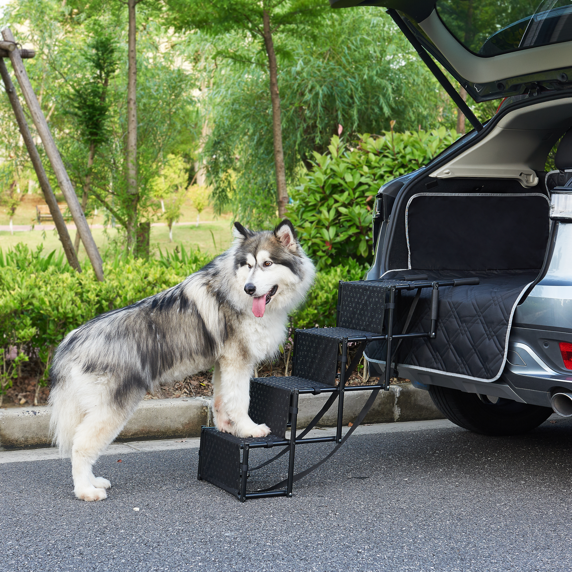 - ajutor pefect pentru caini, astfel fiindu-le usurata urcarea si coborarea din masina