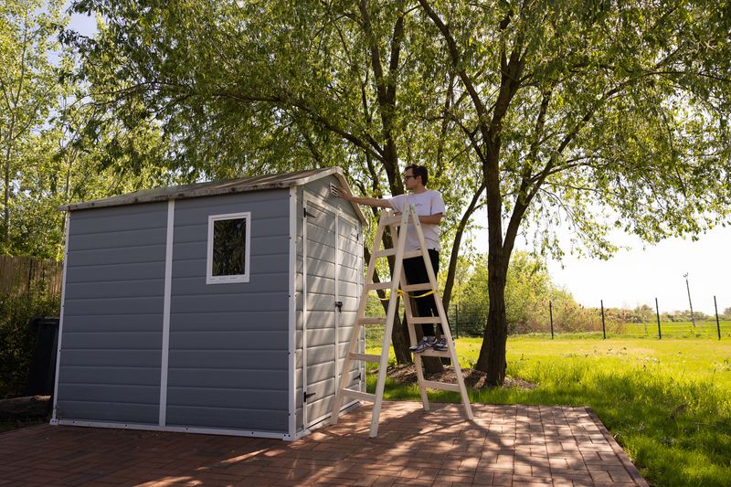 Utilizare: recomandată pentru renovări, zugrăveli, montaj, curățenie în zone greu accesibile sau lucrări ușoare în atelier și casă. Așezați scara pe o suprafață plană și stabilă și verificați fixarea înainte de utilizare.