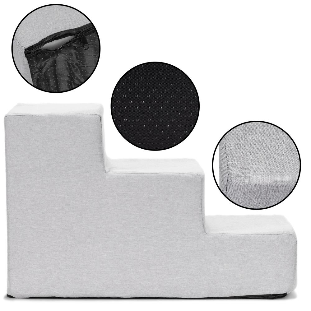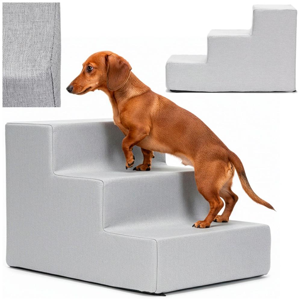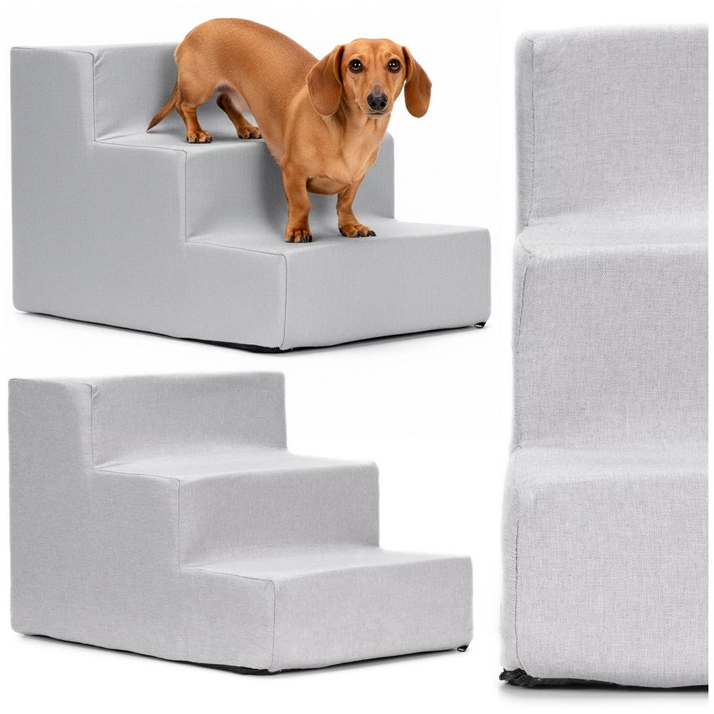 Scara pentru animale de companie, caini sau pisici, 3 trepte, antiderapanta, husa detasabila, inaltime 30 cm, gri deschis