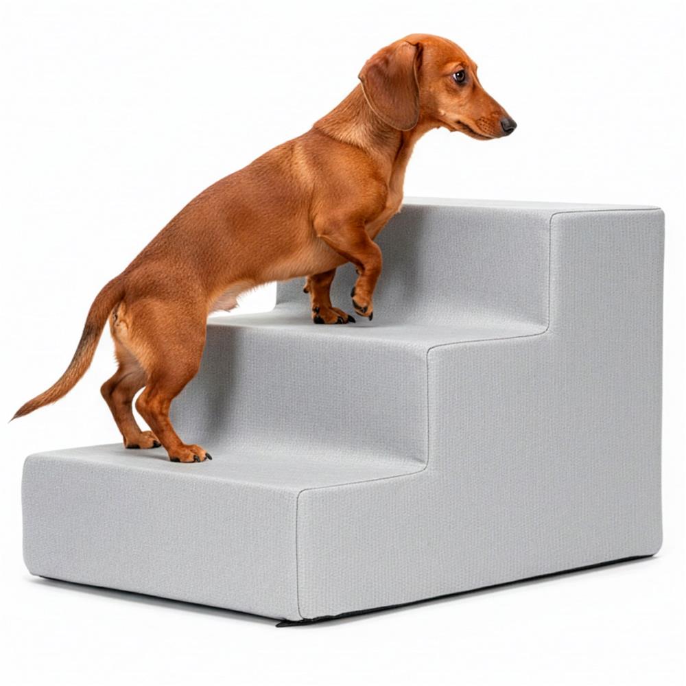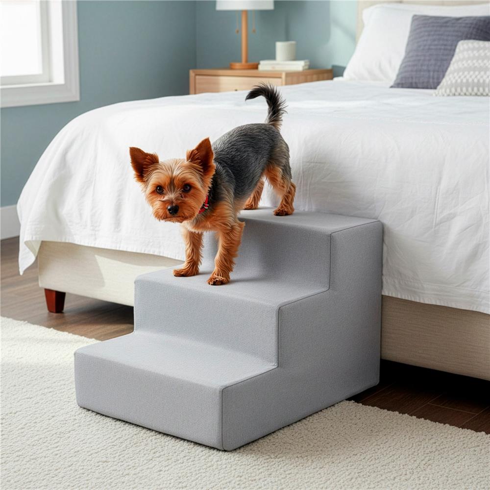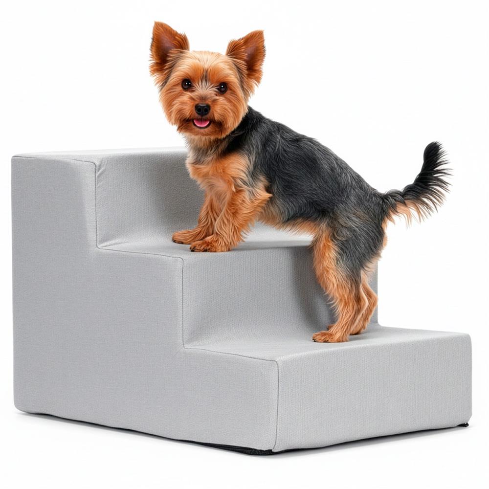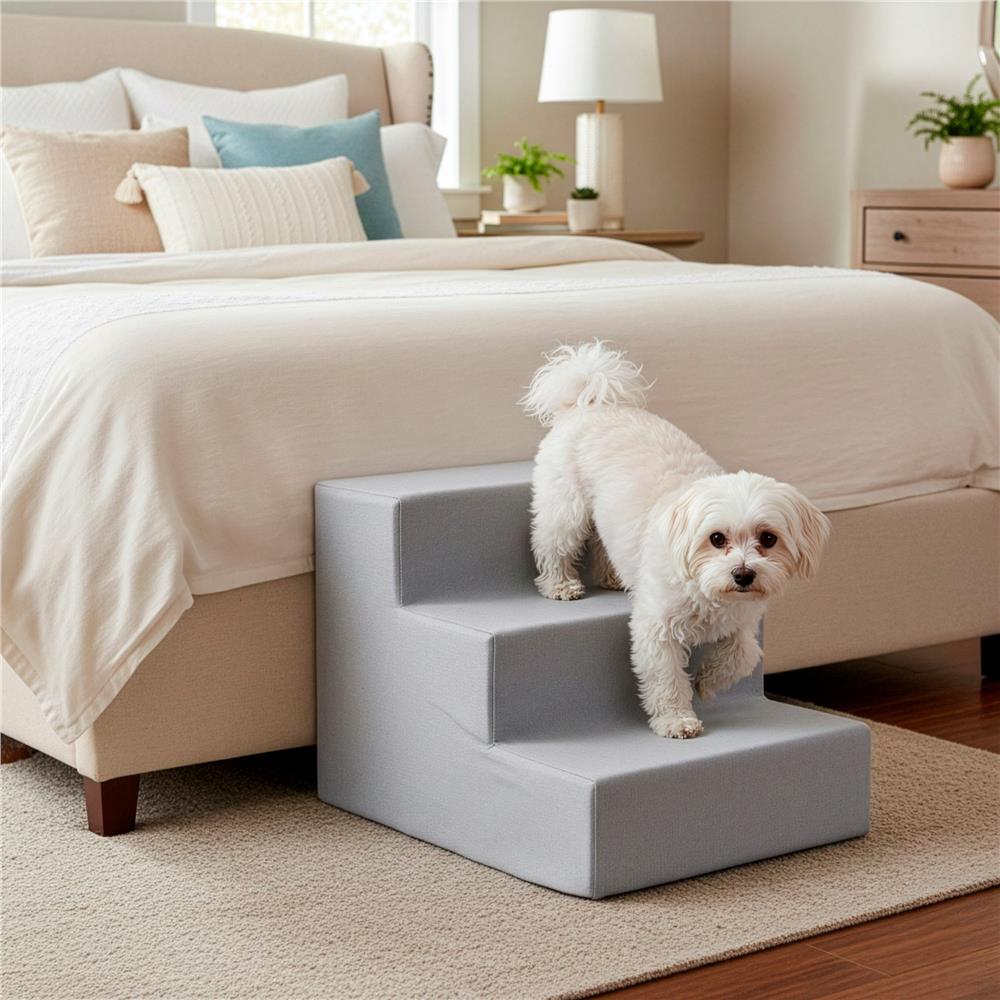 Scara pentru animale de companie, caini sau pisici, 3 trepte, antiderapanta, husa detasabila, inaltime 30 cm, gri deschis