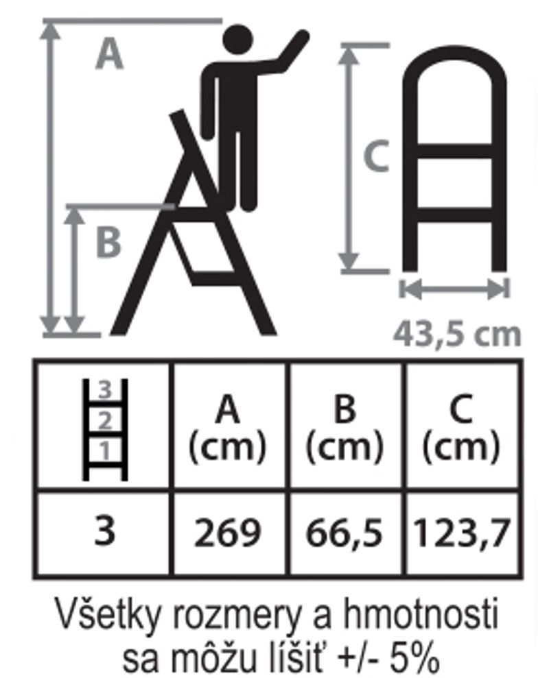 Scară pliabilă Strend Pro LFT130 cu 3 trepte, oțel, 150 kg