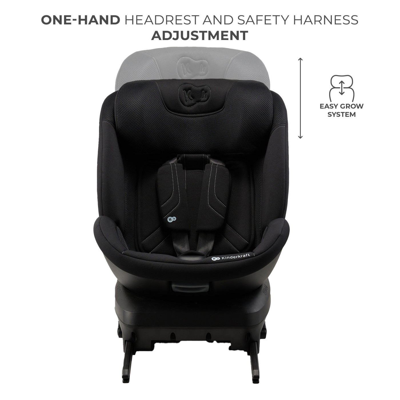 Pentru un plus de comoditate, scaunul auto rotativ are 4 poziții de înclinare, atât cu fața, cât și cu spatele la sensul de mers. Sistemul EASY GROW permite reglarea simultană a tetierei și a centurilor, astfel încât scaunul să se adapteze pe măsură ce copilul crește. Husa din materiale rezistente, cu inserții 3D mesh, susține circulația aerului și menține o temperatură plăcută în timpul drumurilor lungi.