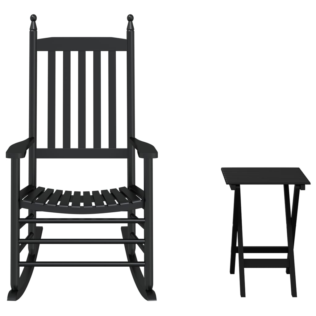 Scaun balansoar cu cu masă pliabilă, negru, lemn masiv de plop GartenMobel Dekor