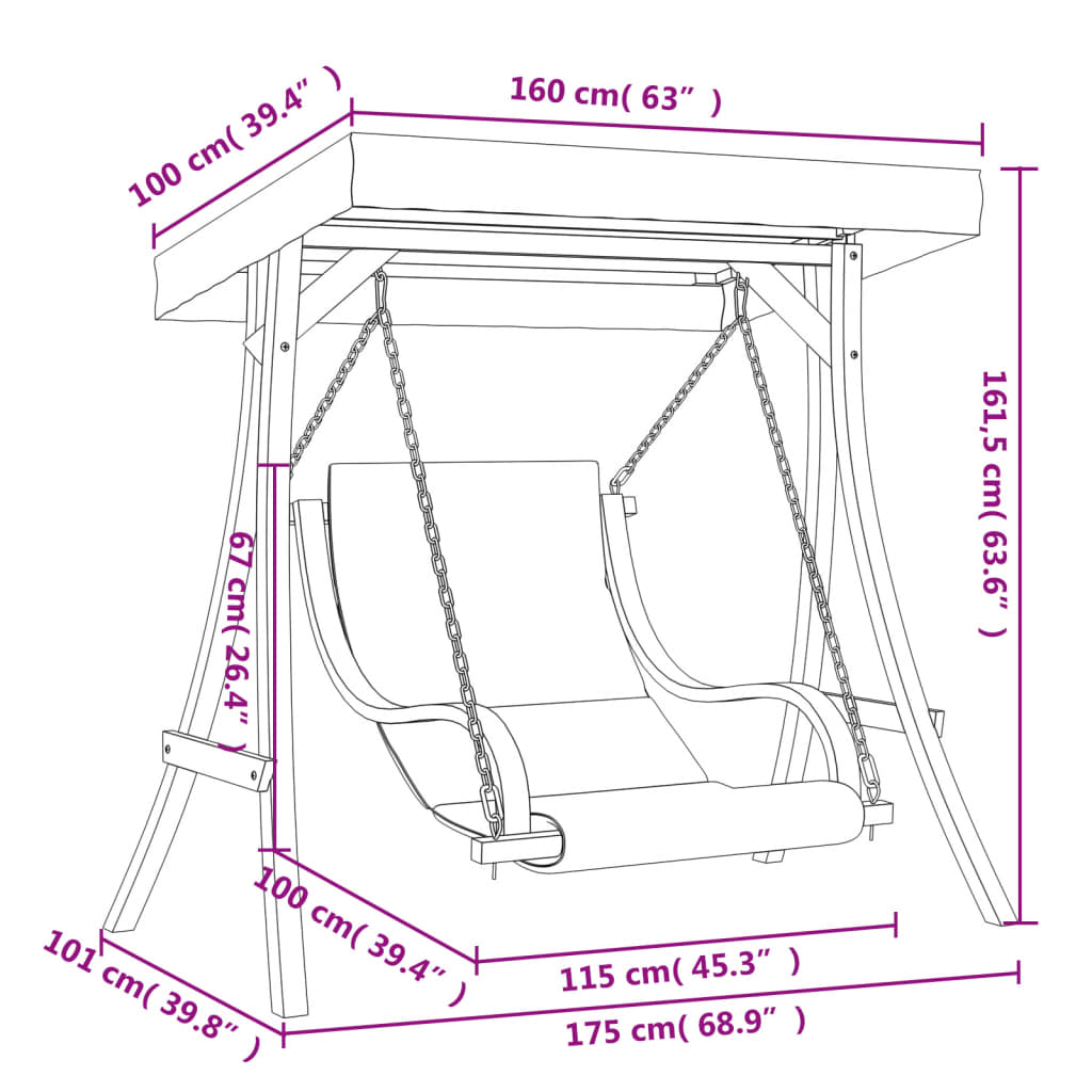 Scaun balansoar cu pernă și baldachin, lemn masiv de molid GartenMobel Dekor