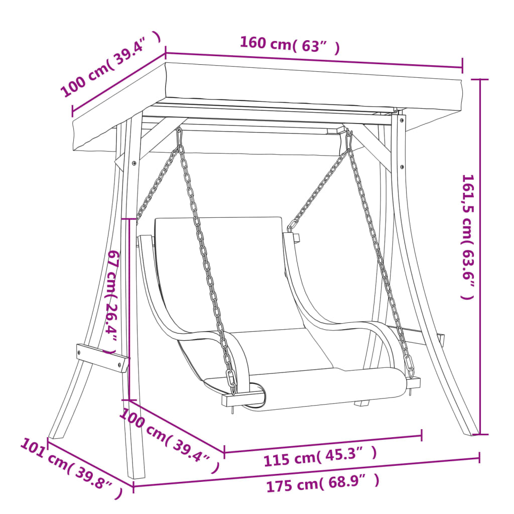 - Dimensiuni scaun balansoar: 115 x 100 x 67 cm (l x ad. x î)