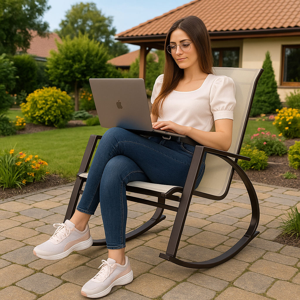 Descriere Scaun balansoar gradina metal textil, 60x104x95