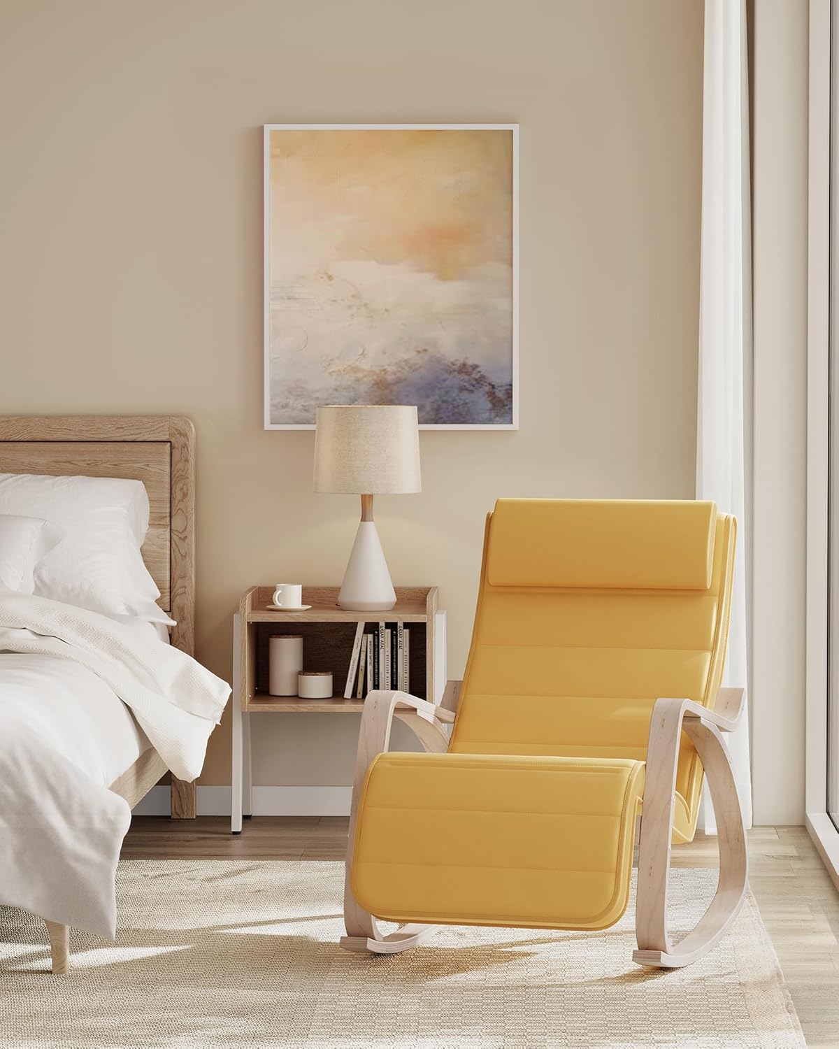 Scaun balansoar SONGMICS din lemn cu suport picioare reglabil, galben