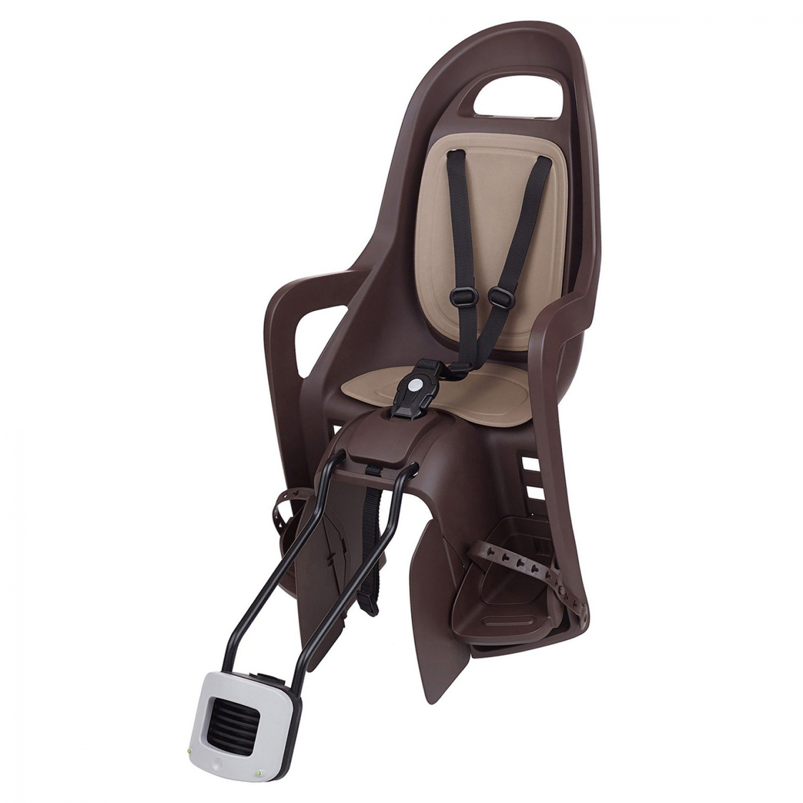 Scaunul de bicicleta Groovy Maxu FF ofera protectie integrata pentru picioare cu protectie laterala sporita.