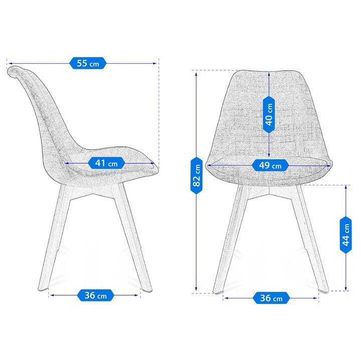 Are un spatar perfect profilat, acoperit cu material textil, care, combinat cu o perna moale asezata pe scaun, ofera un confort deosebit. Picioarele din lemn de fag usor asigura stabilitate si durabilitate. Scaunul este foarte practic si functional.