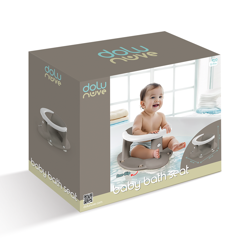 Scaun de baie pentru bebelusi, gri mat, cu 4 ventuze si design ergonomic