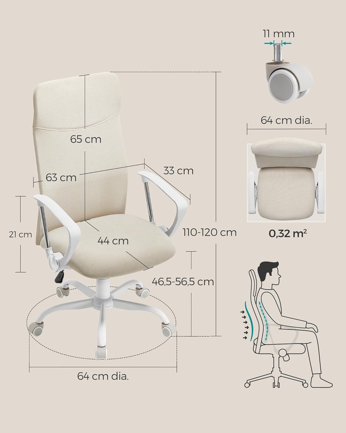 Descriere Scaun birou ergonomic SONGMICS bej, reglabil,