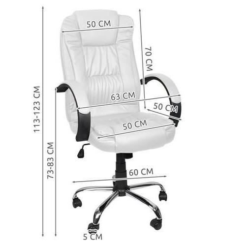 Scaun de birou, rotativ, functie tilt, piele ecologica, otel, alb, max 130 kg, 60x60x113/123 cm, Malatec