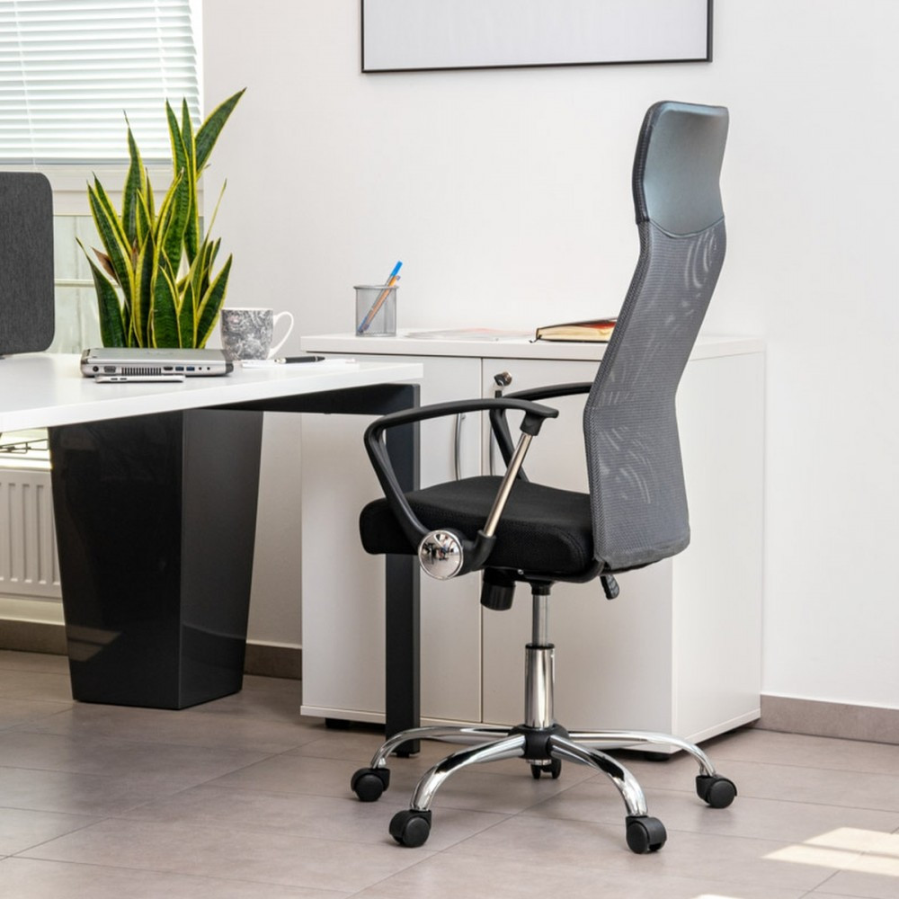 Potrivit pentru birou, home office, camera de studiu sau spatii de lucru in care ai nevoie de un scaun ventilat si usor de ajustat. Se intretine simplu: sterge periodic suprafetele si curata plasa cu o perie moale sau aspirare usoara.