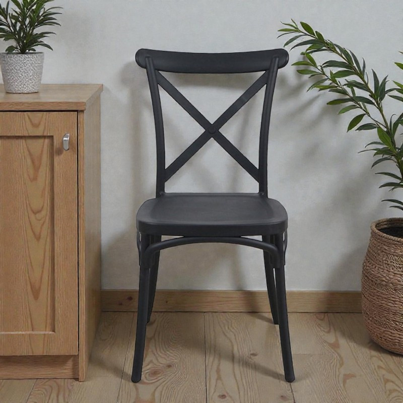 Adauga un plus de confort si stil oricarui spatiu cu acest scaun clasic din polipropilena, conceput pentru a combina eleganta cu functionalitatea moderna. Modelul sau versatil se integreaza perfect atat in bucatarii si cafenele, cat si in spatii exterioare, fiind ideal pentru gradini, terase sau evenimente precum garden party si pool party. Culoarea neagra, sofisticata si neutra, se potriveste cu orice decor, aducand un aer elegant si uniform, indiferent de contextul de utilizare.
