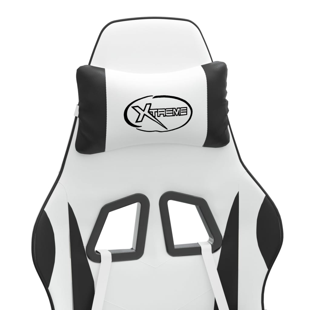 Scaun de gaming cu suport picioare, alb/negru, piele ecologică GartenMobel Dekor
