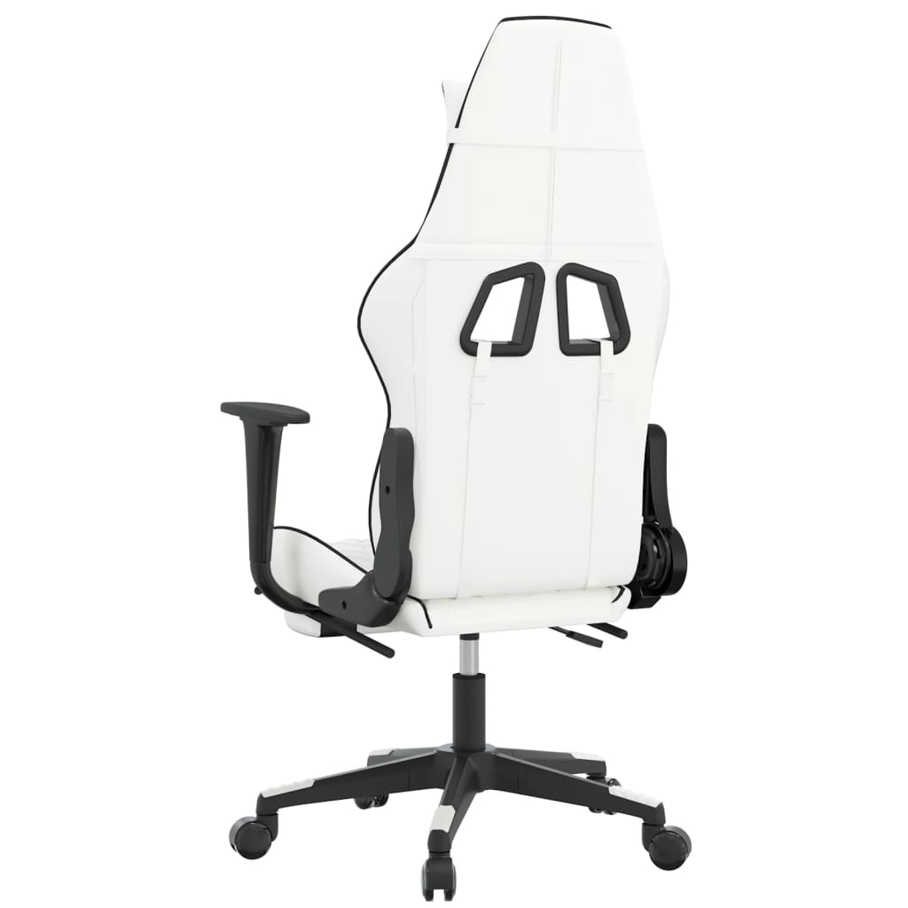Scaun de gaming masaj/suport picioare alb/negru piele eco GartenMobel Dekor