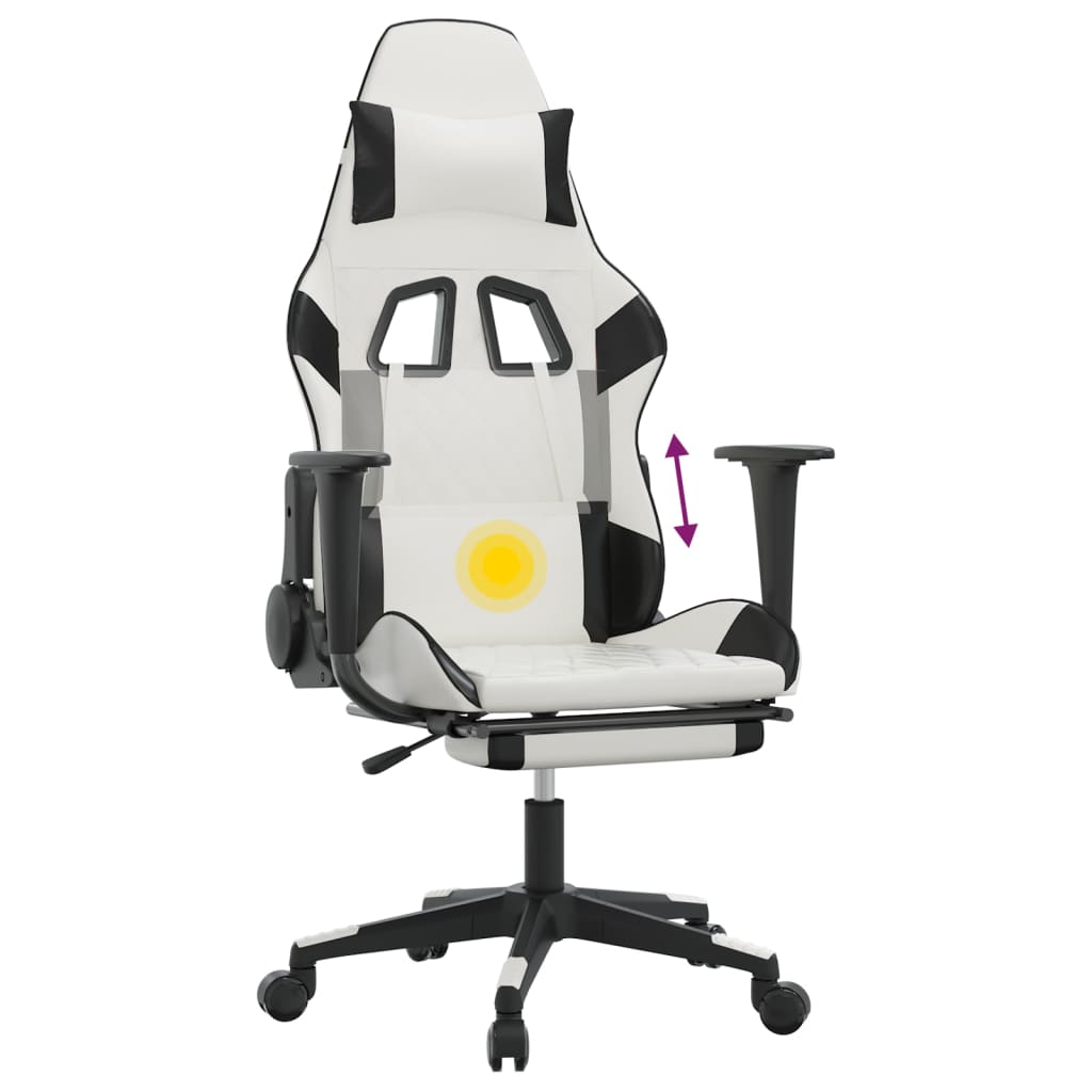 Descriere Scaun gaming masaj/suport picioare alb/negru piele