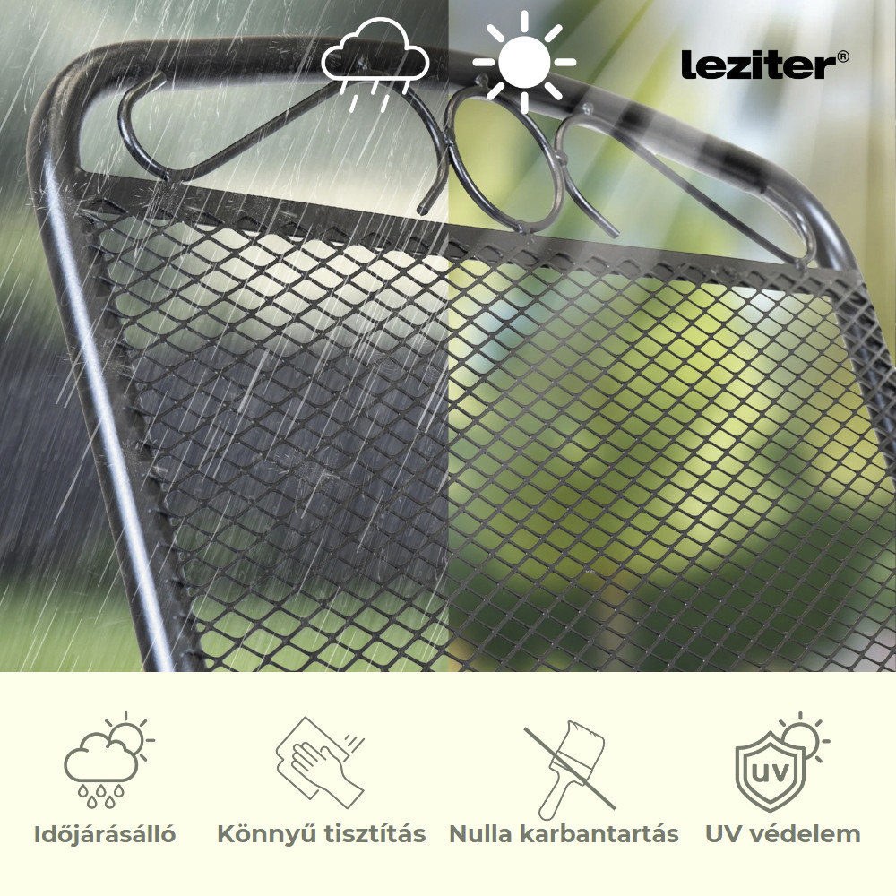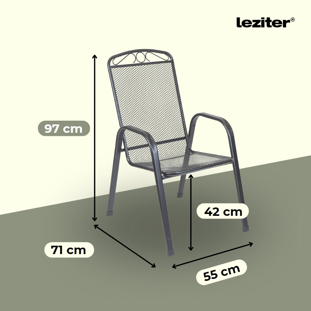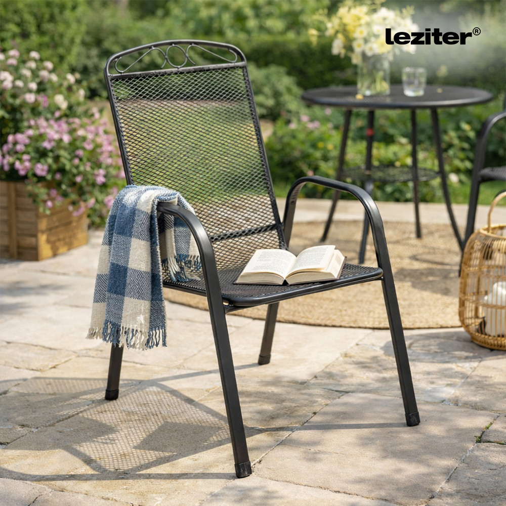 Adaugă un plus de confort și stil spațiului exterior cu scaunul de grădină din metal Leziter Melfi, în nuanță elegantă antracit. Construit pe o structură solidă din oțel tip mesh, acest scaun exterior este potrivit pentru grădină, terasă sau balcon, oferind un aspect aerisit, modern și o întreținere ușoară.