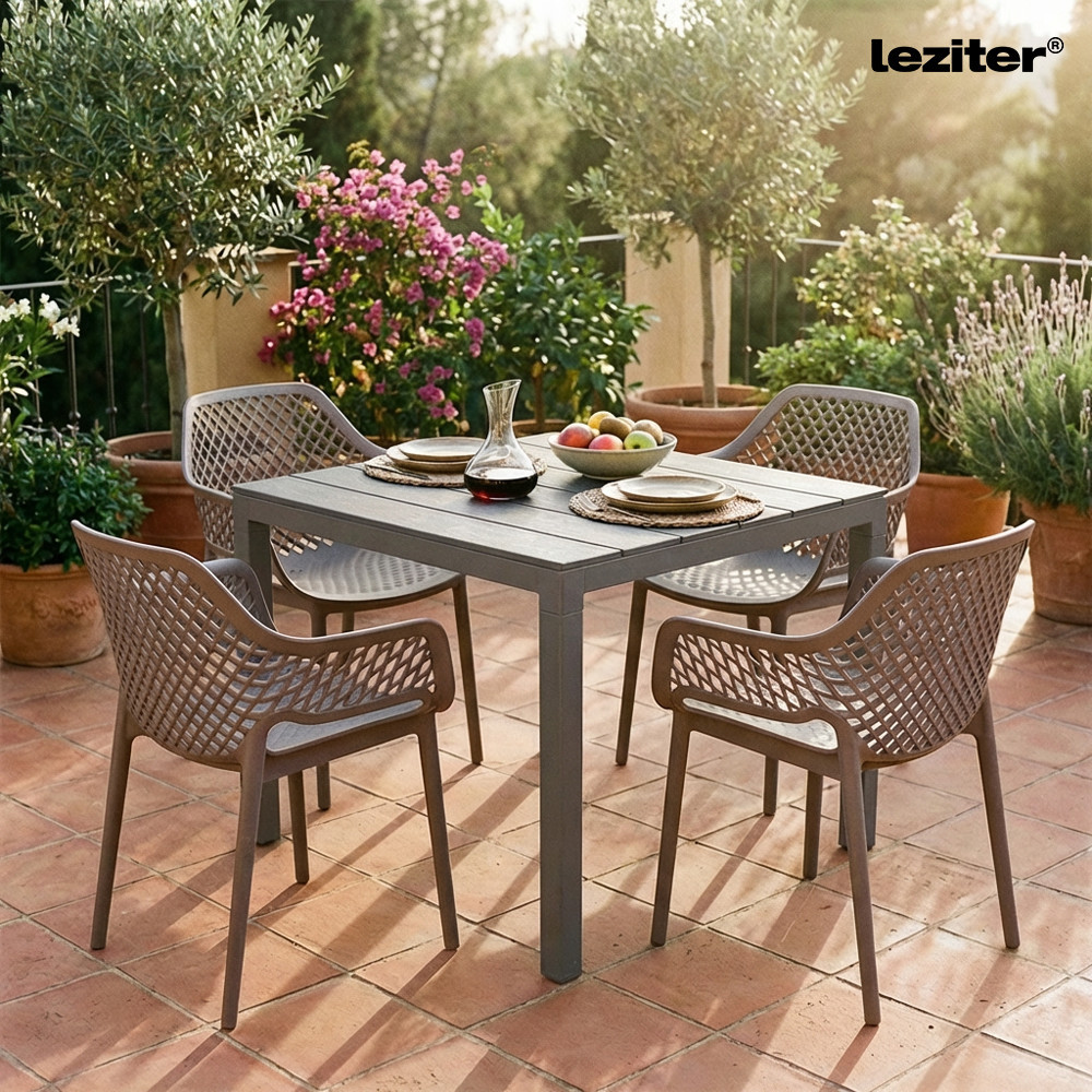Adaugă un plus de confort și stil spațiului tău cu scaunul de grădină din plastic Leziter Letino, în nuanță elegantă cappuccino. Conceput pentru utilizare la exterior și interior, acest scaun de exterior îmbină designul modern cu întreținerea ușoară, fiind o alegere practică pentru terasă, balcon, grădină sau zone de dining.