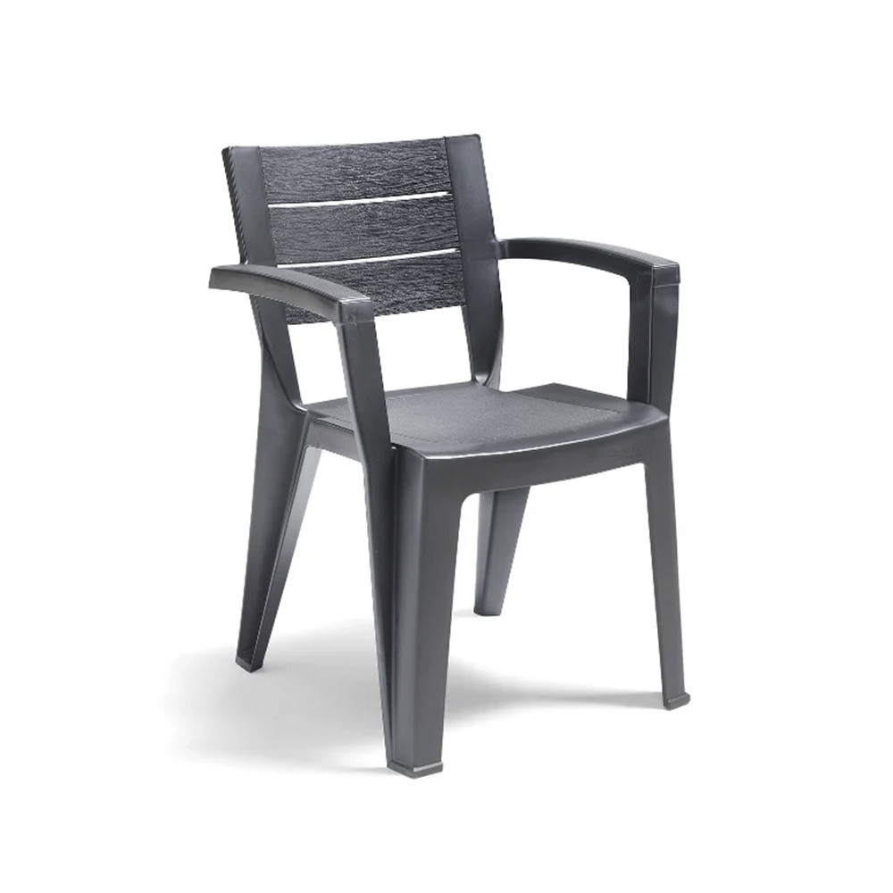 Adaugă un plus de confort și stil spațiului tău exterior cu scaunul de grădină din plastic Leziter Milla, în elegantul finisaj grafit. Cu un design modern, brațe confortabile și construcție practică, acest scaun de exterior este potrivit pentru terasă, balcon, grădină sau zone de relaxare amenajate în aer liber.
