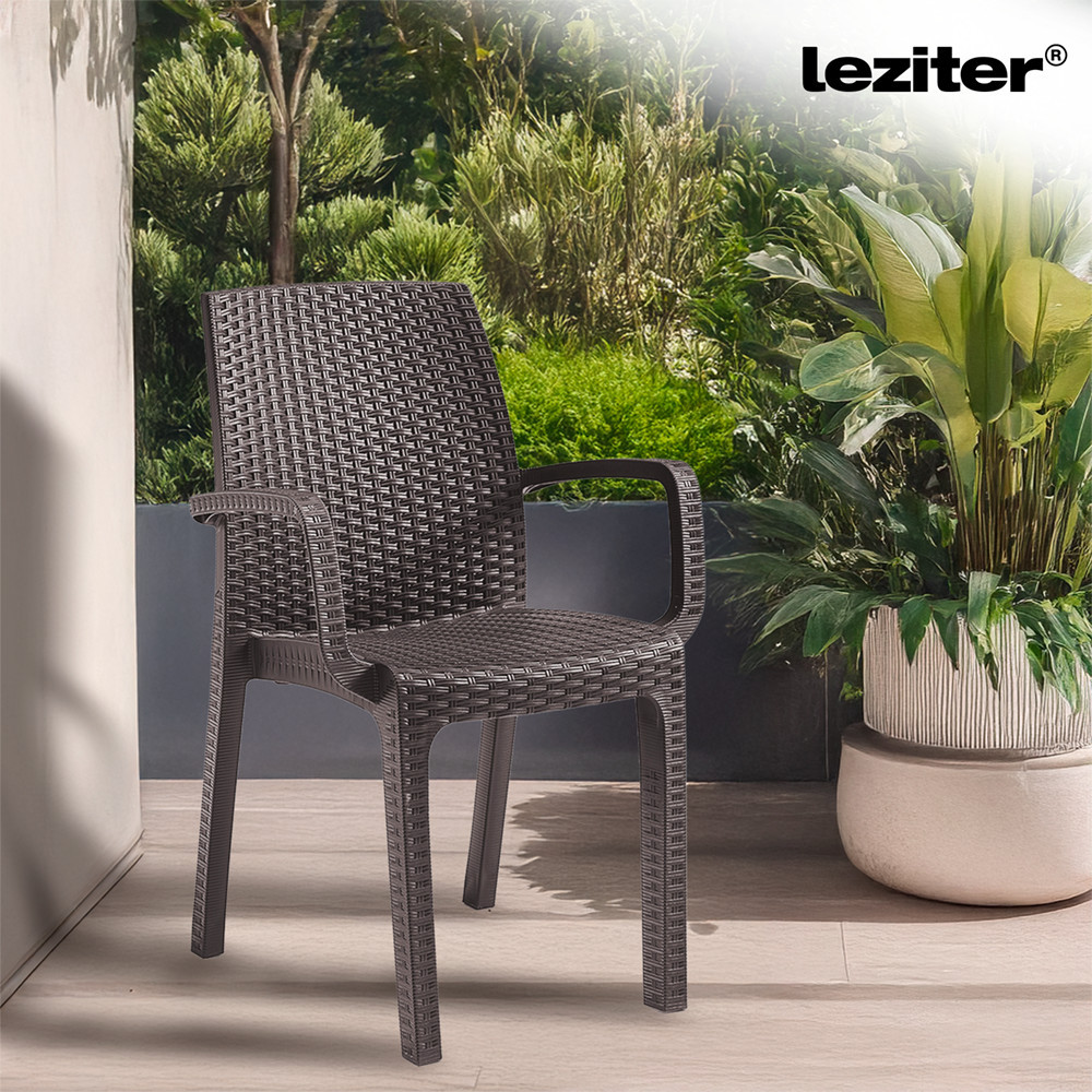 Transformă balconul, terasa sau grădina într-un loc primitor cu scaunul Leziter Verdi. Realizat din plastic cu efect ratan, oferă un aspect modern și o ședere comodă, fără griji de întreținere. Nuanța cappuccino se integrează ușor în decoruri clasice sau contemporane.