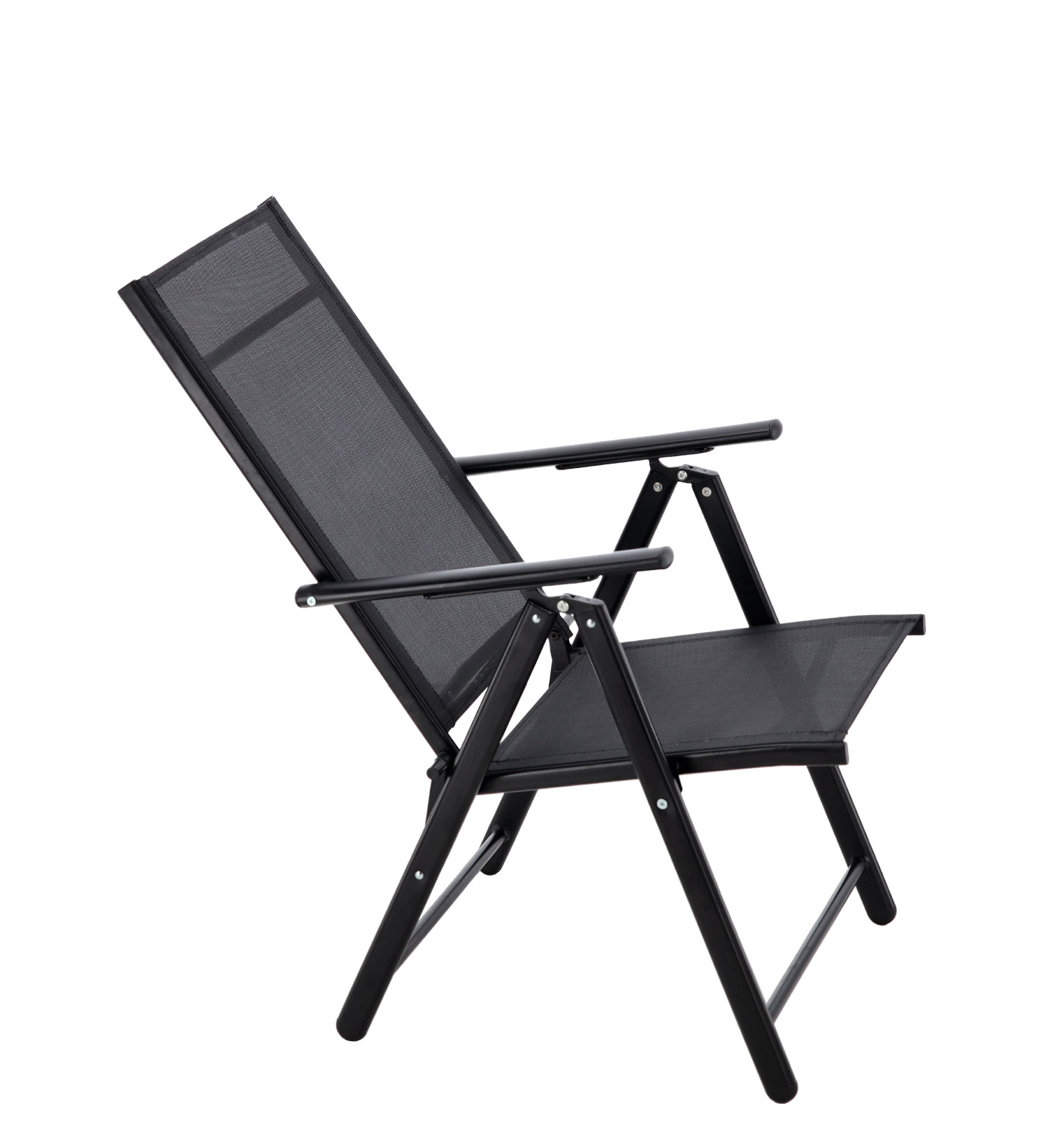 Scaun de grădină pliant din oțel, cu spătar reglabil 7 poziții, negru