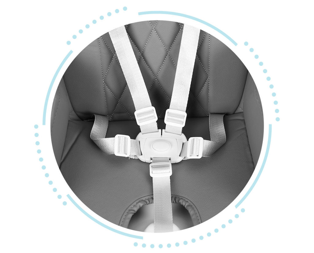 - Siguranță sporită: centură în 5 puncte + sistem anti-alunecare