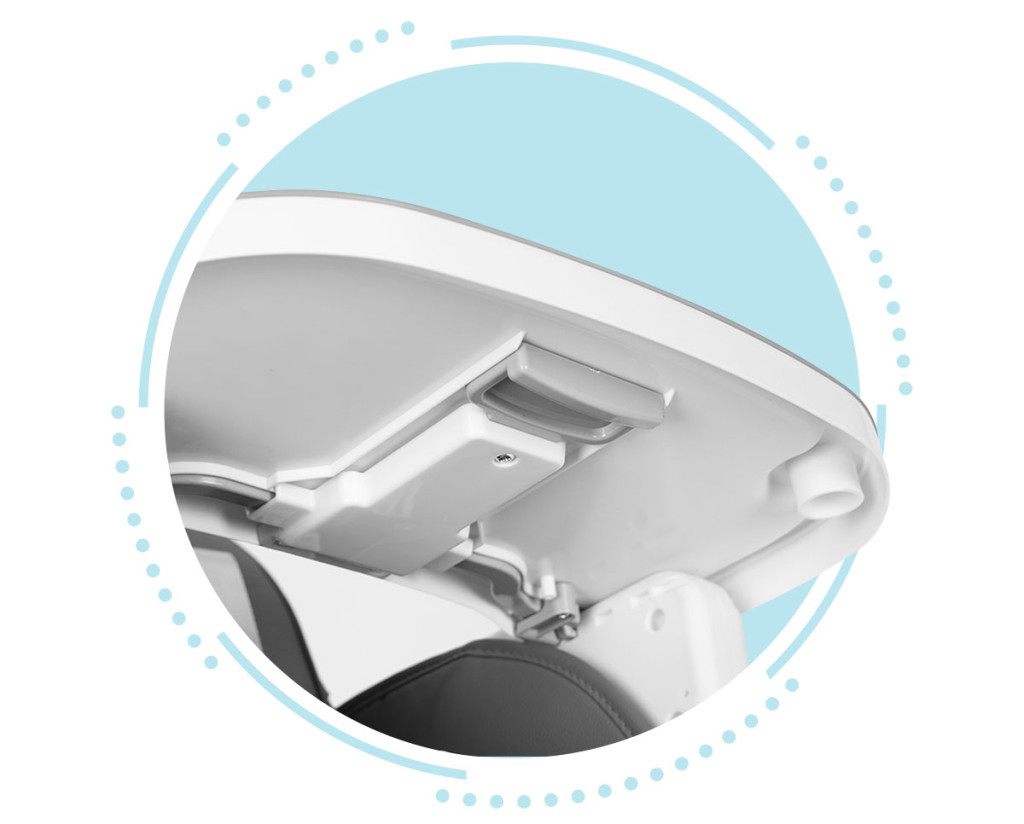 - Tavă detașabilă și reglabilă, cu două straturi și margini profilate (ajută la păstrarea curățeniei)