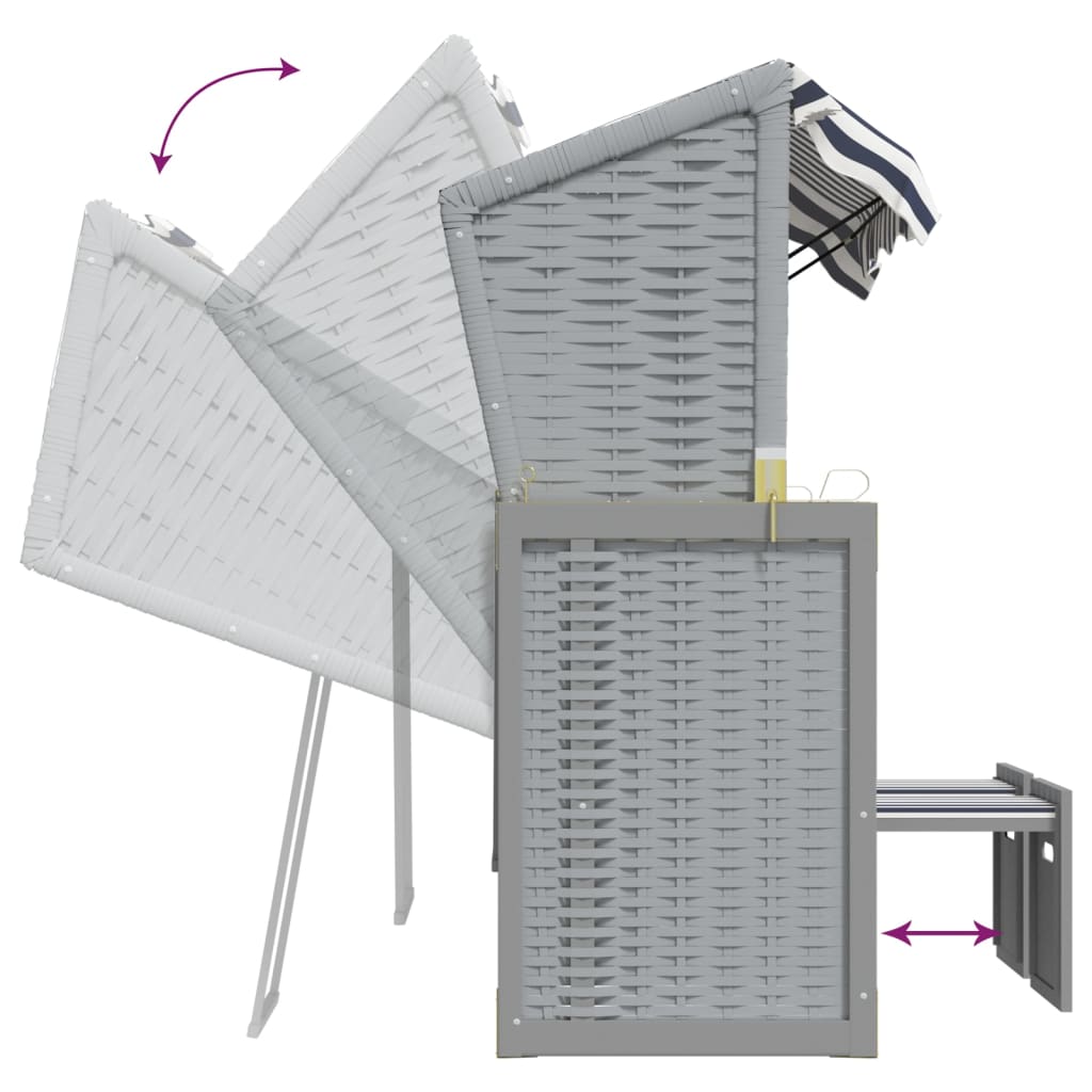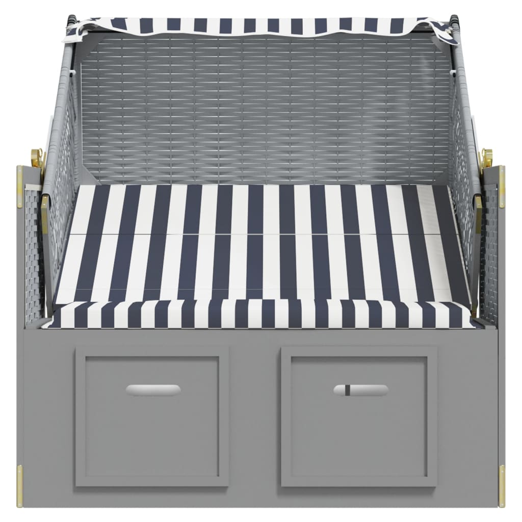 Scaun de plajă cu baldachin,albastru&alb,poliratan&lemn masiv GartenMobel Dekor