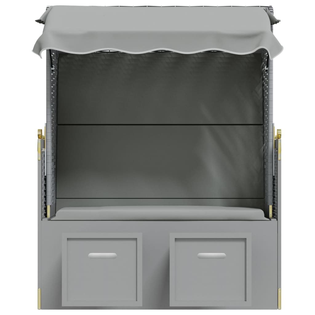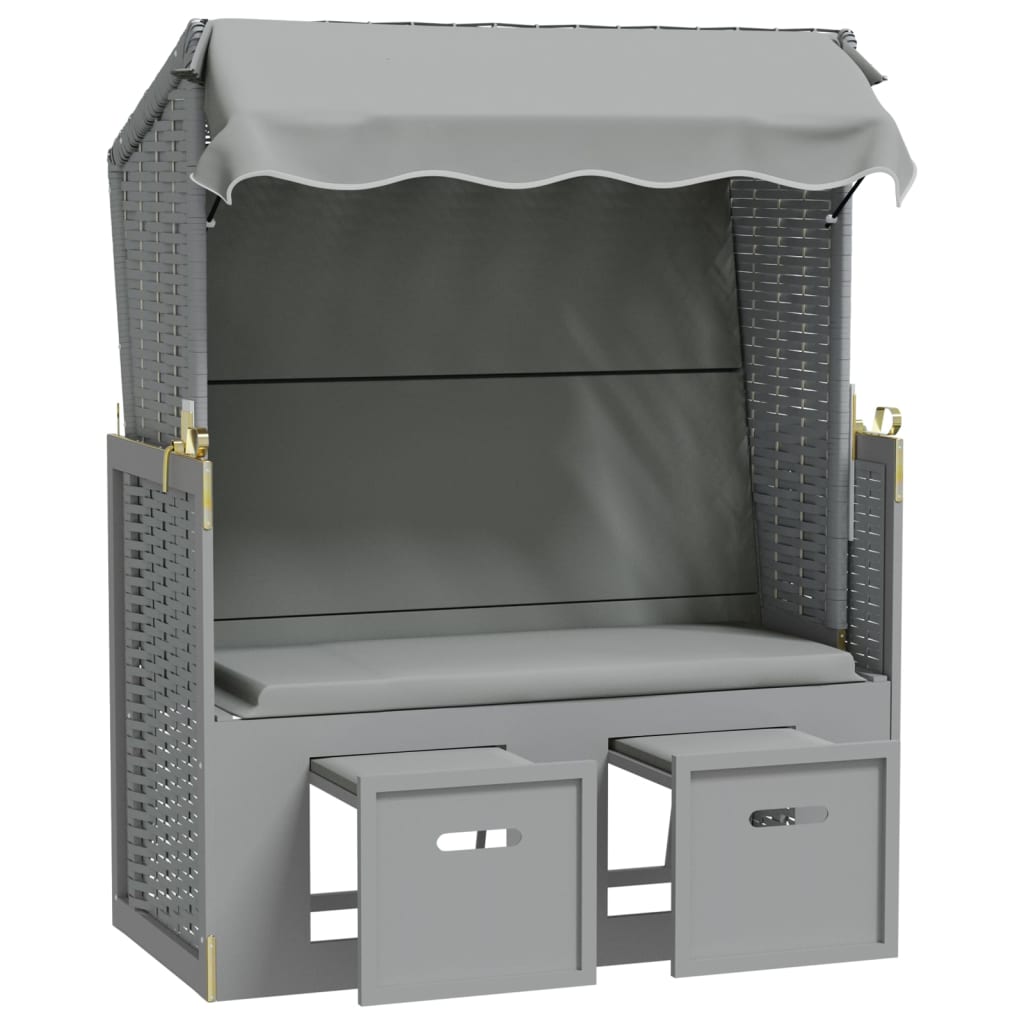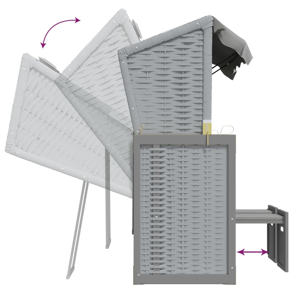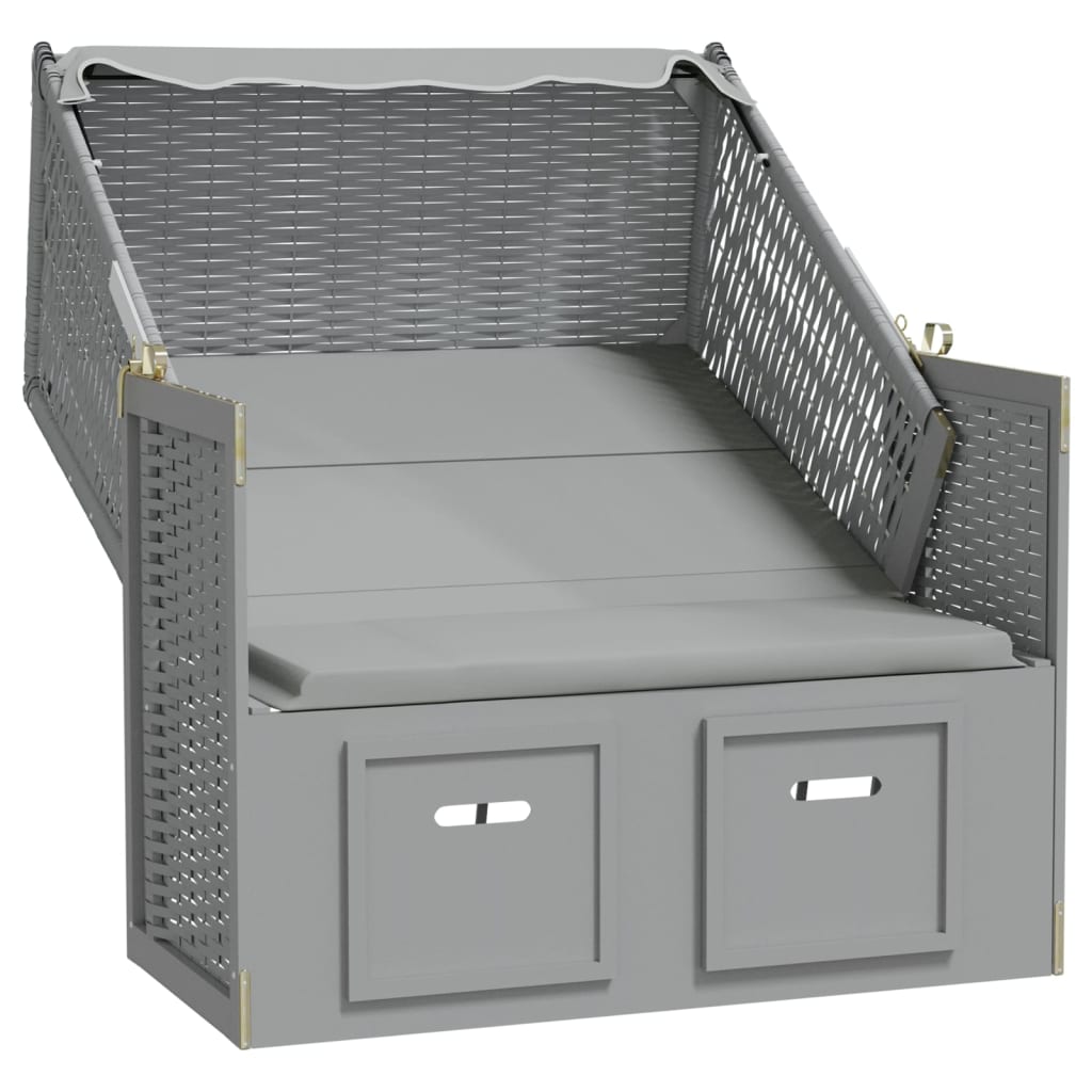 Scaun de plajă cu baldachin, gri, poliratan și lemn masiv GartenMobel Dekor