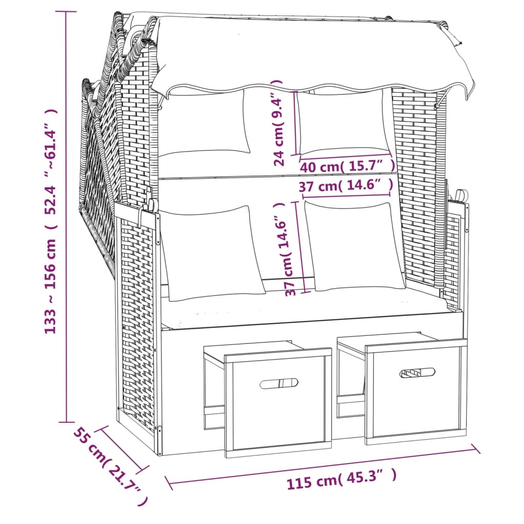 - Caracteristici practice: șezlongul de plajă este proiectat cu un baldachin pentru a vă proteja de soare, iar panourile sale laterale vă permit să vă bucurați de el chiar și în zilele cu vânt.