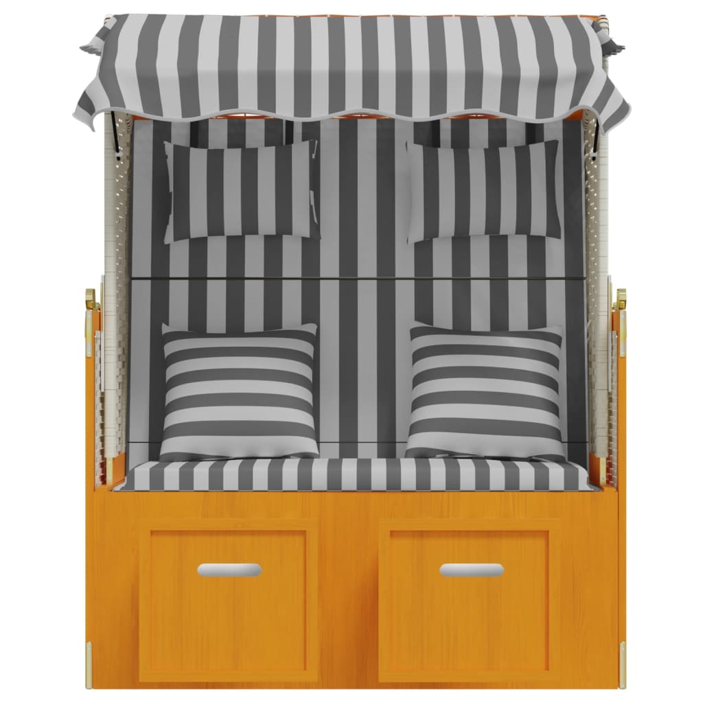 Scaun de plajă cu perne, alb/gri, poliratan și lemn masiv GartenMobel Dekor