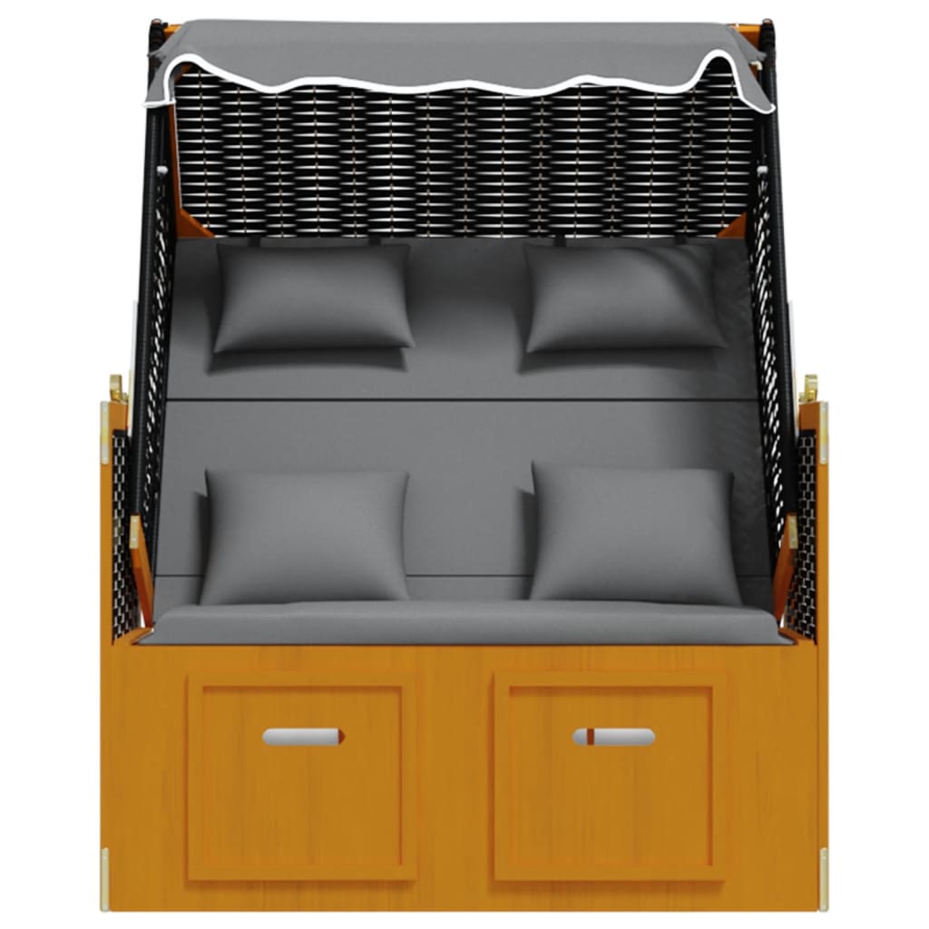 Scaun de plajă cu perne negru/antracit poliratan și lemn masiv GartenMobel Dekor