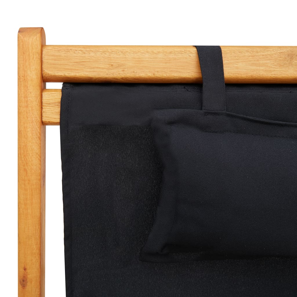 Scaun de plajă pliabil, negru, lemn masiv de eucalipt, textil GartenMobel Dekor