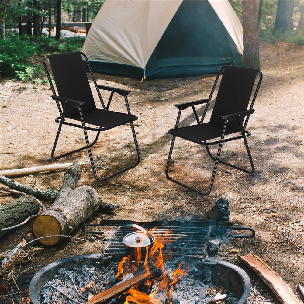 Datorită designului pliabil, scaunul se transportă simplu și ocupă puțin spațiu la depozitare. Cotierele din plastic sporesc confortul, iar finisajul negru îl face ușor de integrat în orice decor exterior.